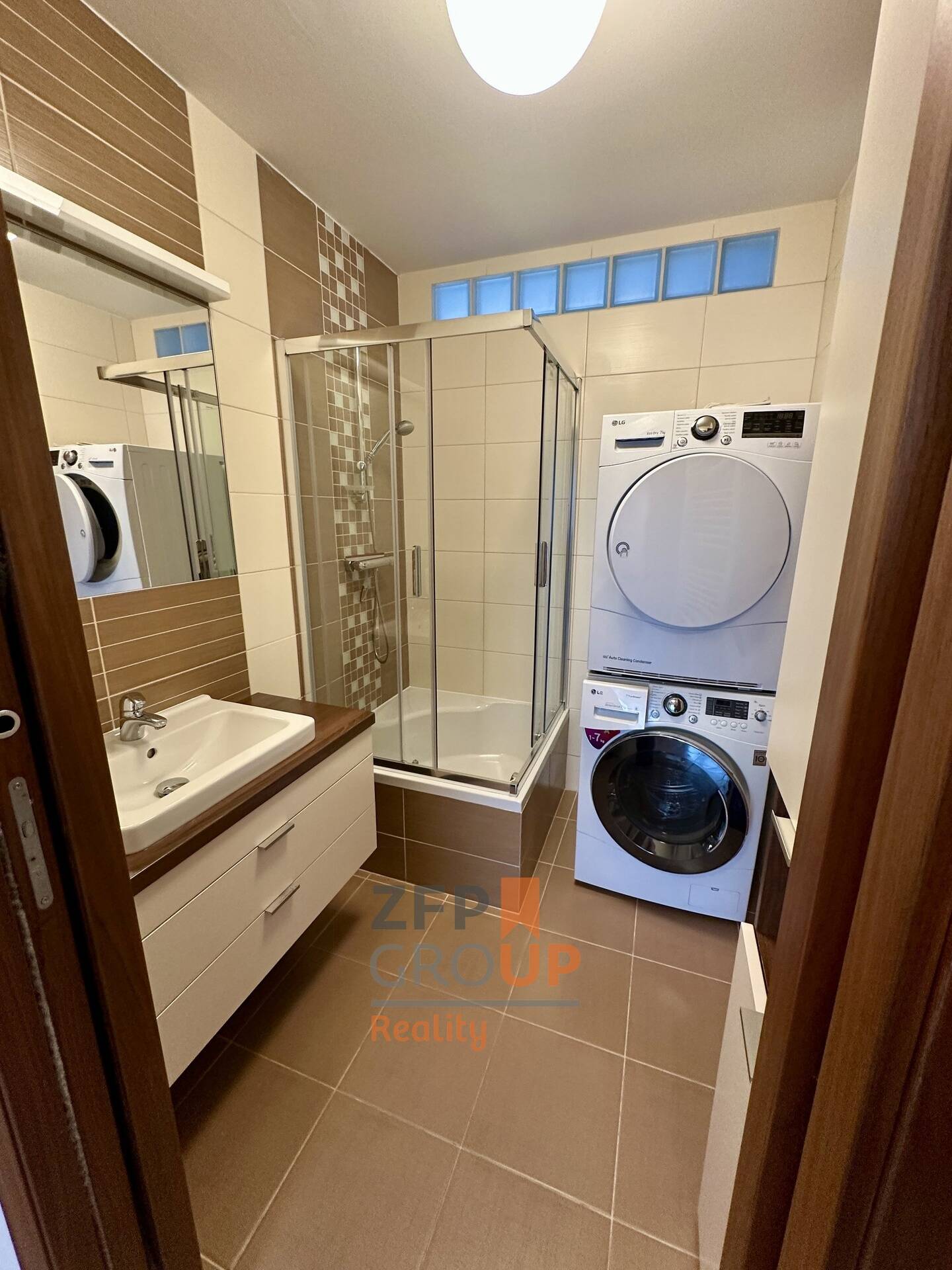 • koupelna se sprchovým koutem s vyvýšenou vaničkou vhodnou i ke koupání dětí, k dispozici pračka a sušička