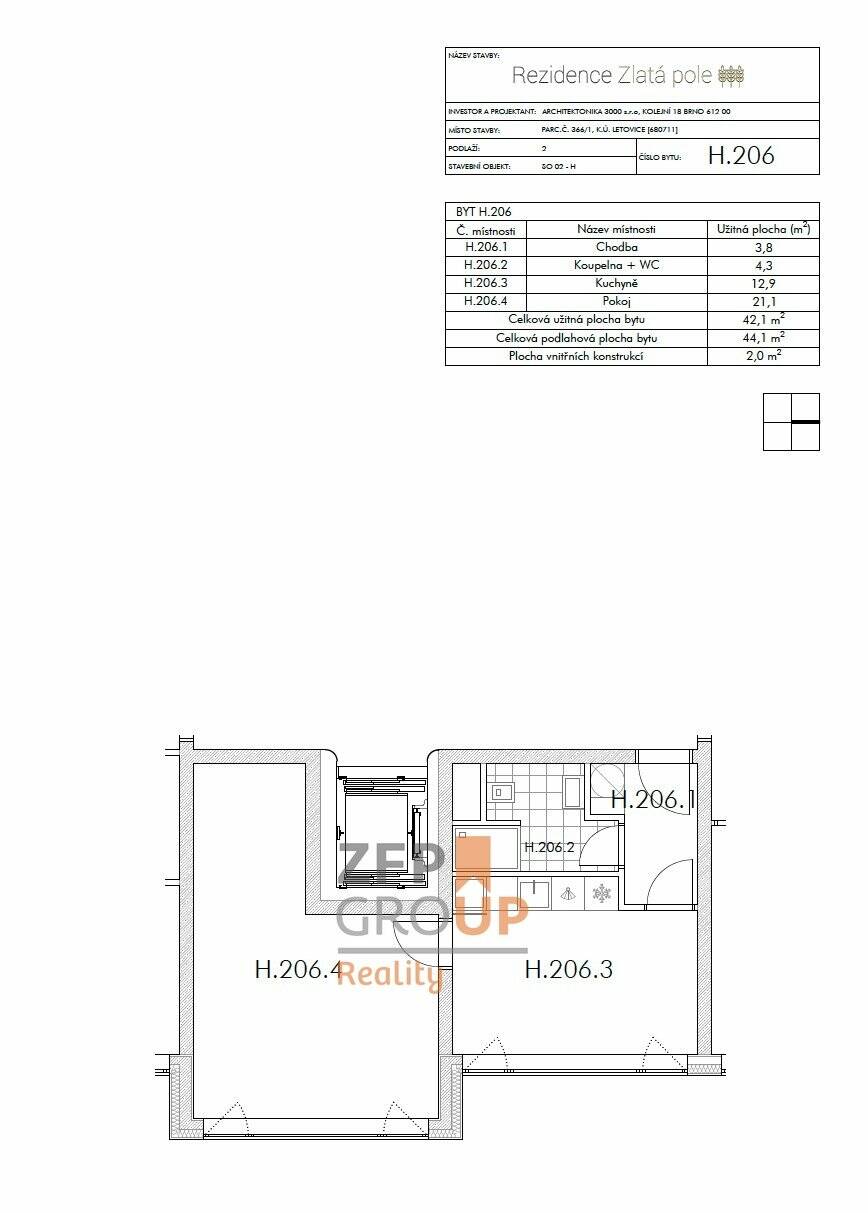 Nabízíme k dlouhodobému pronájmu moderní byt v jedné z nejnovějších letovických novostaveb – Rezidenci Zlatá pole.