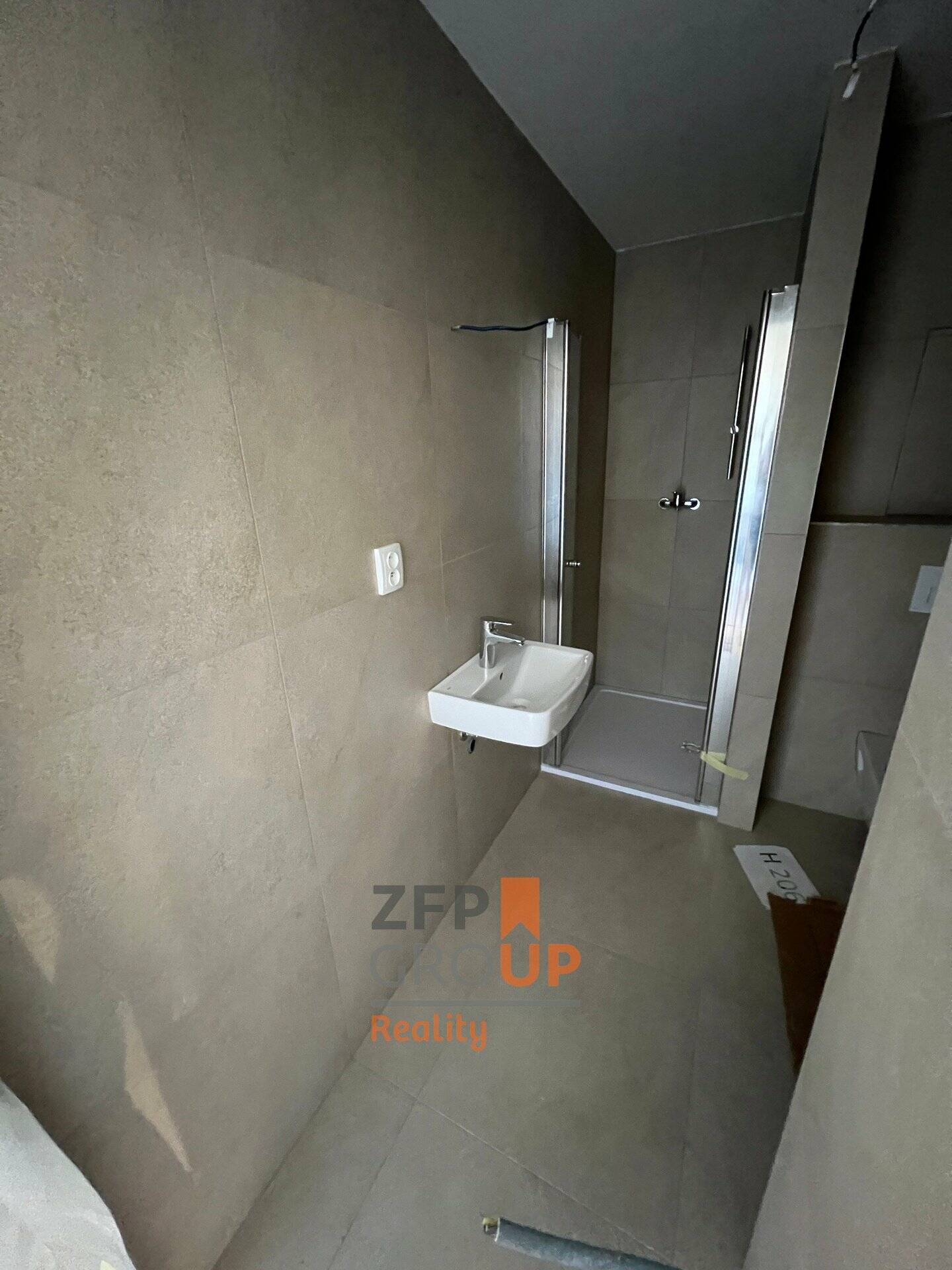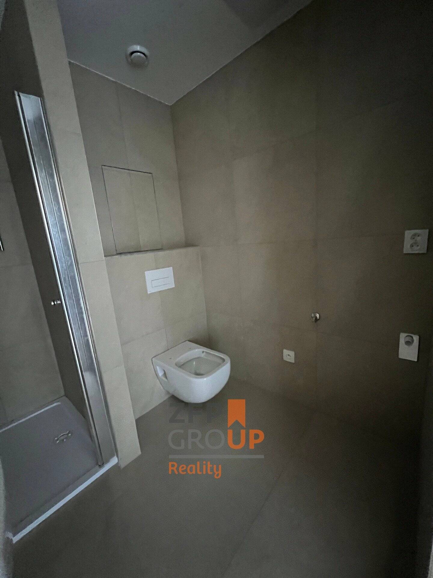V koupelně je sprchový kout, příprava na pračku a případně sušičku, dále zde najdete elektrický sušák na ručníky, umyvadlo se skříňkou, zrcadlovou skříňku a toaletu.