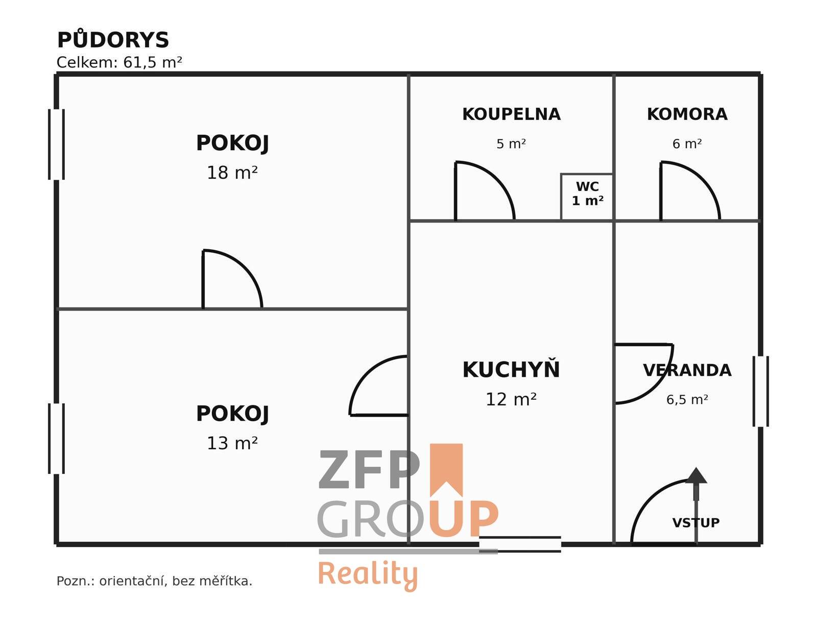 - obytná část o dispozici 2+1, dále komora, koupelna a samostatné WC