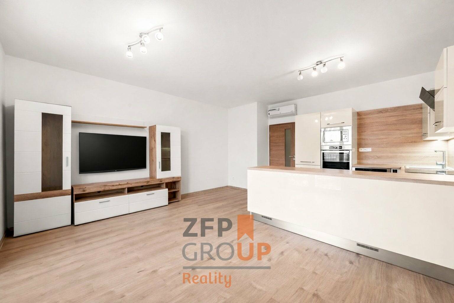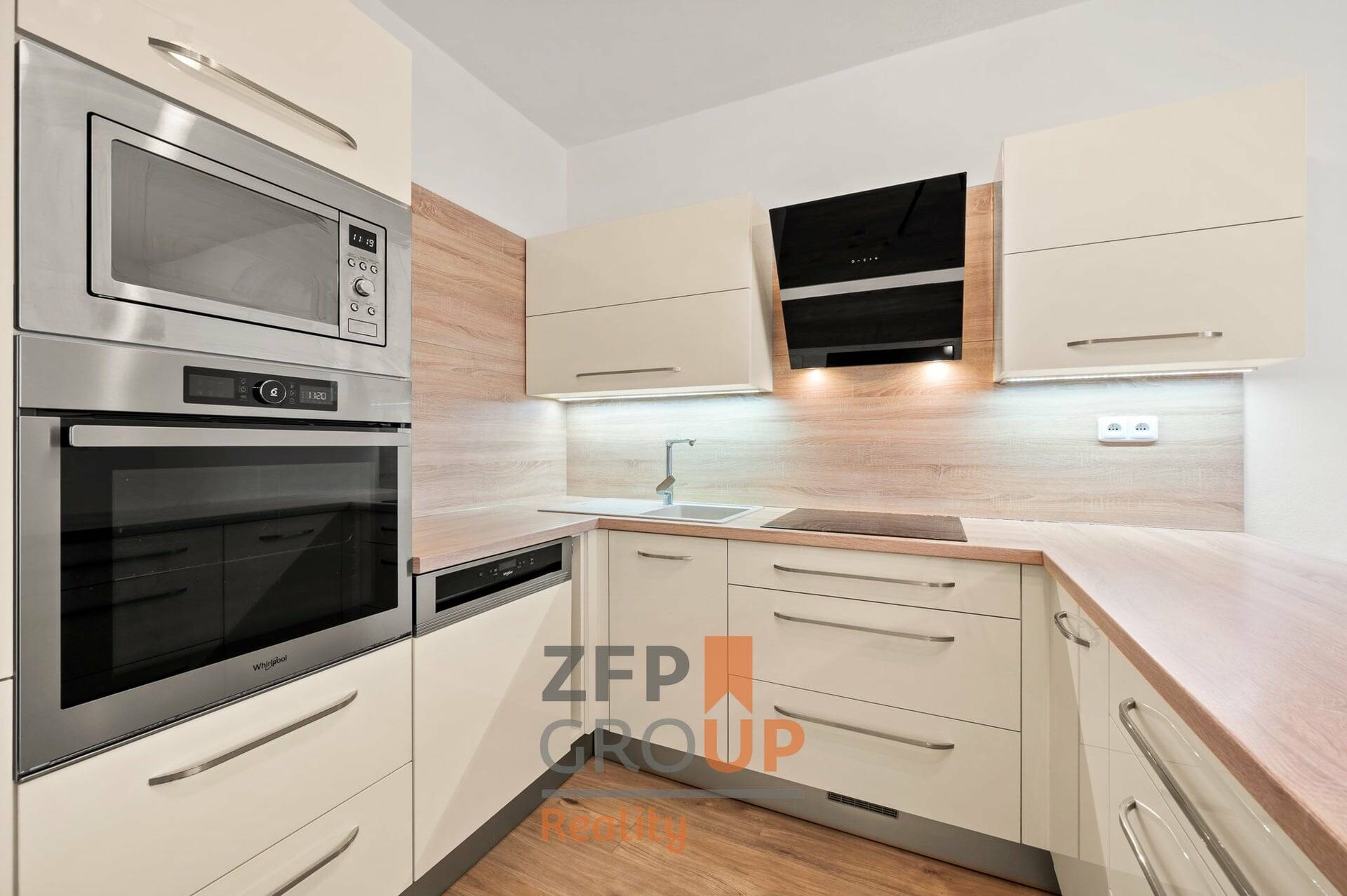 Dominantou je prostorný obývací pokoj s kuchyňským koutem (25,8 m²). Kuchyňská linka je řešena do „U“ s velkým množstvím pracovní plochy i úložných prostor a je vybavena vestavnými spotřebiči. Komfort v letních měsících zajišťuje klimatizace.