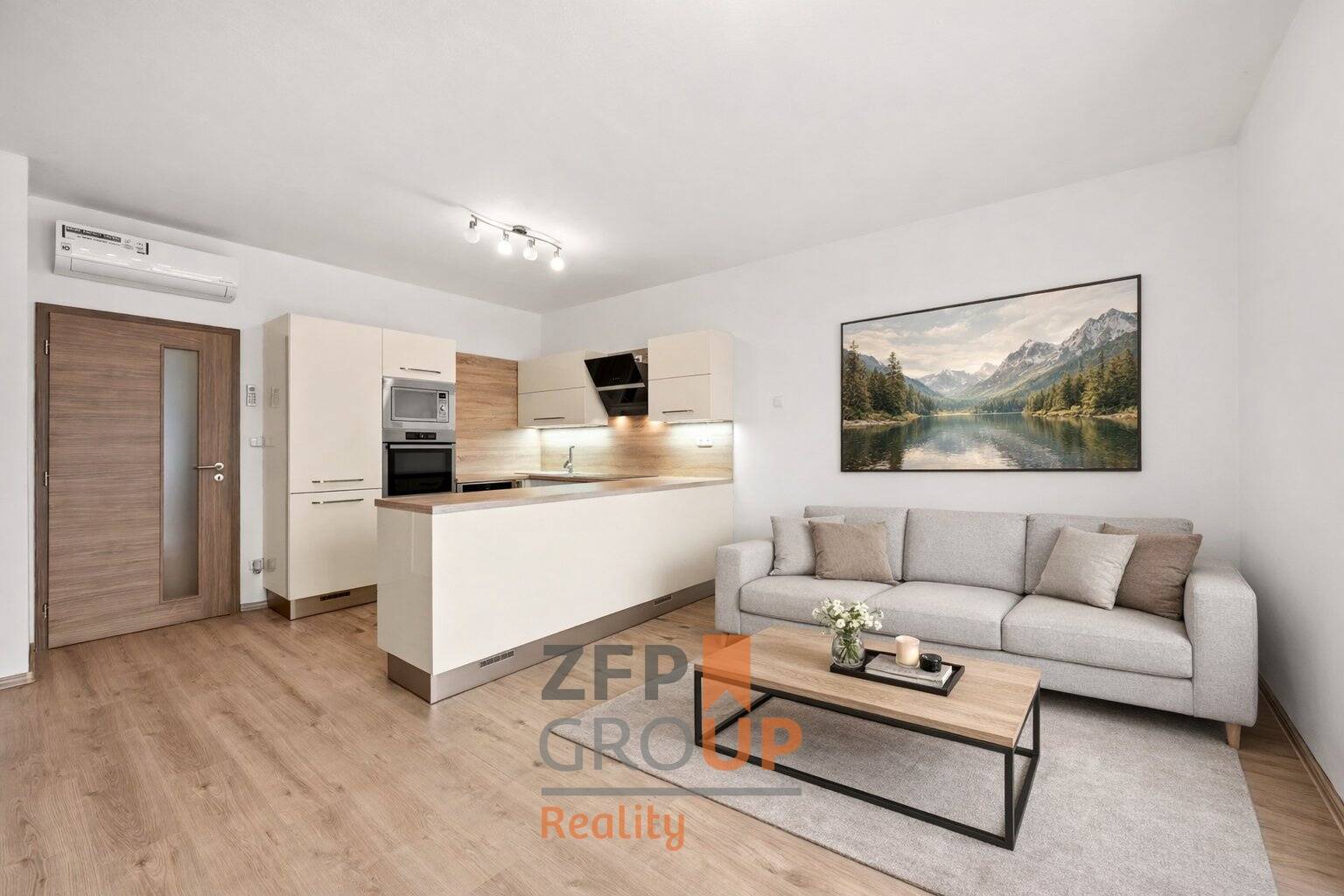 Byt se nachází v 1.patře. Díky velkým oknům je velice světlí, působí vzdušně a nabízí moderní komfort včetně klimatizace a podlahového vytápění v celém bytě.