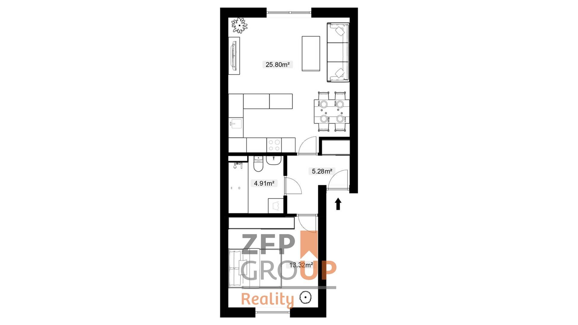 obývací pokoj s kuchyňským koutem: 25,80 m²