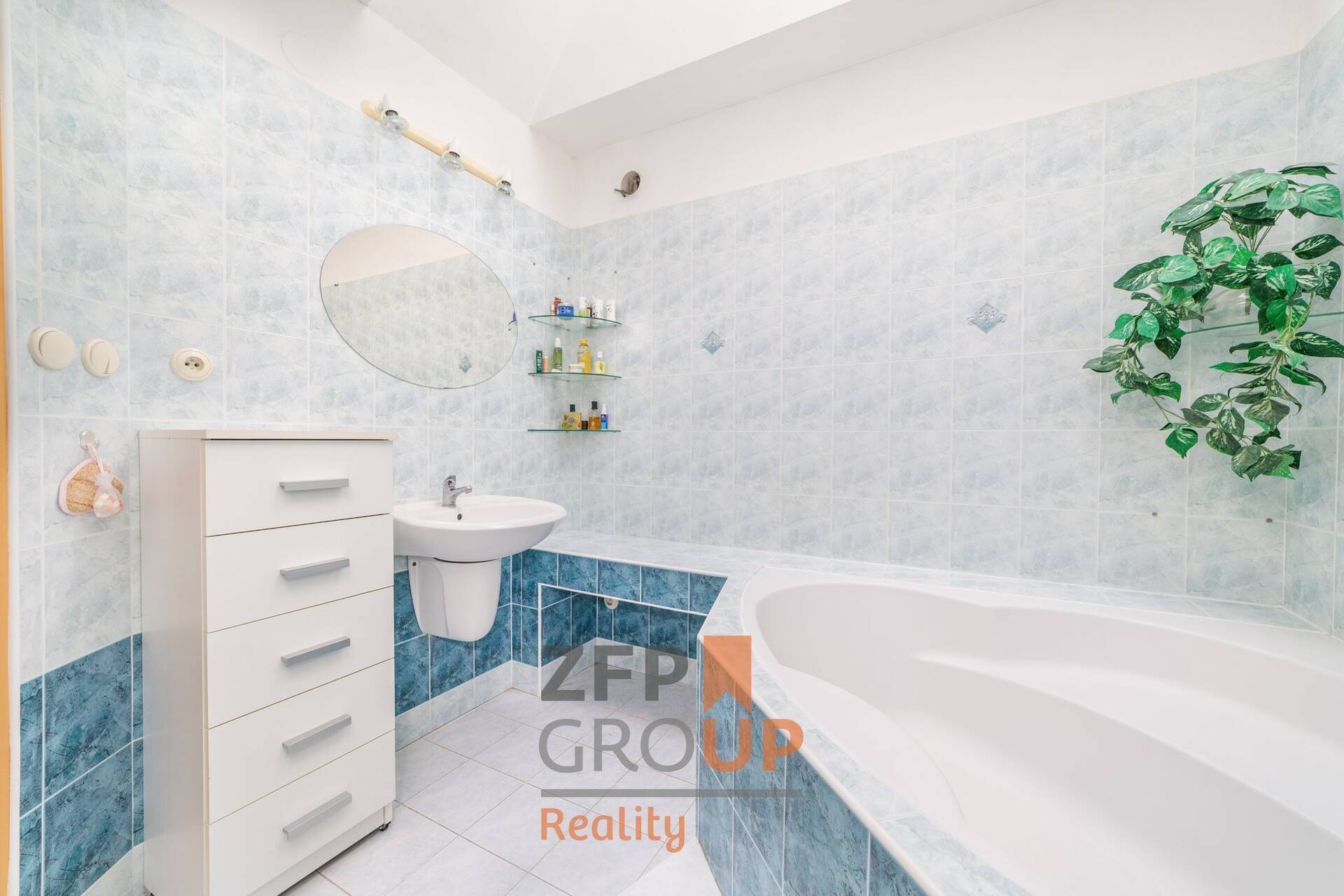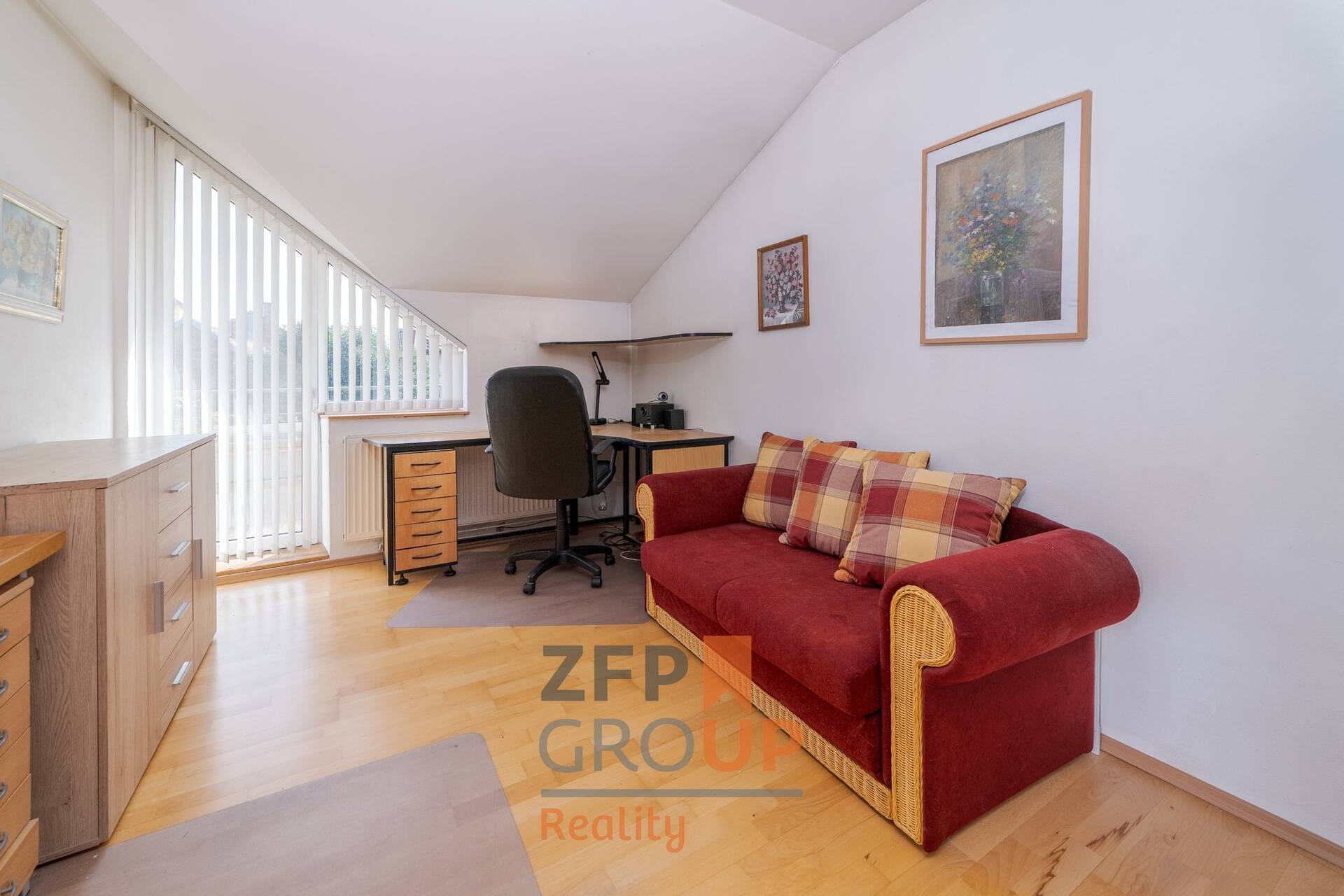 V horním patře jsou tři pokoje se samostatným vstupem, jeden z nich s klimatizací. Součástí je prostorná koupelna s rohovou vanou i sprchovým koutem a oddělenou toaletou. Možnost uložení věcí v půdní části domu.