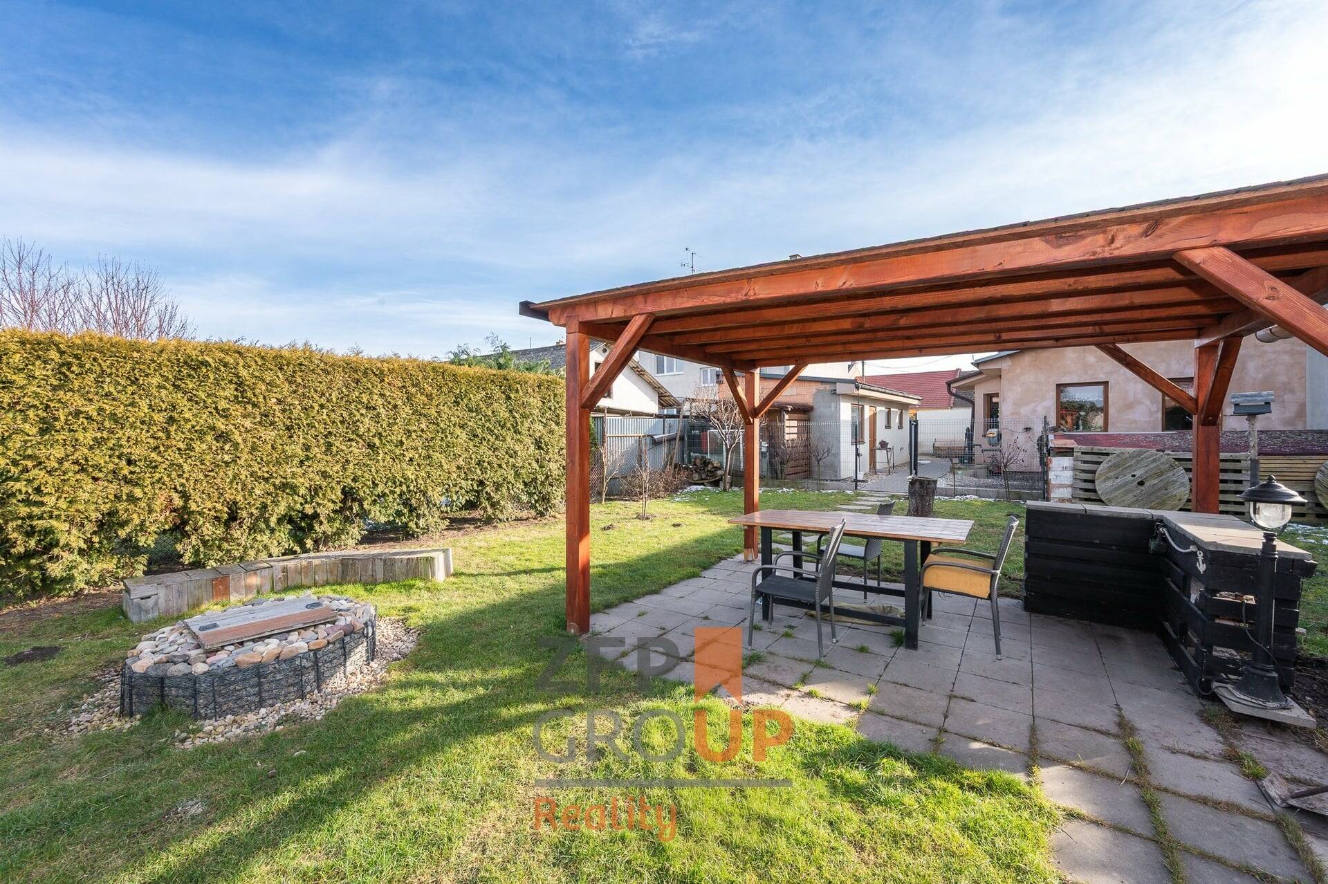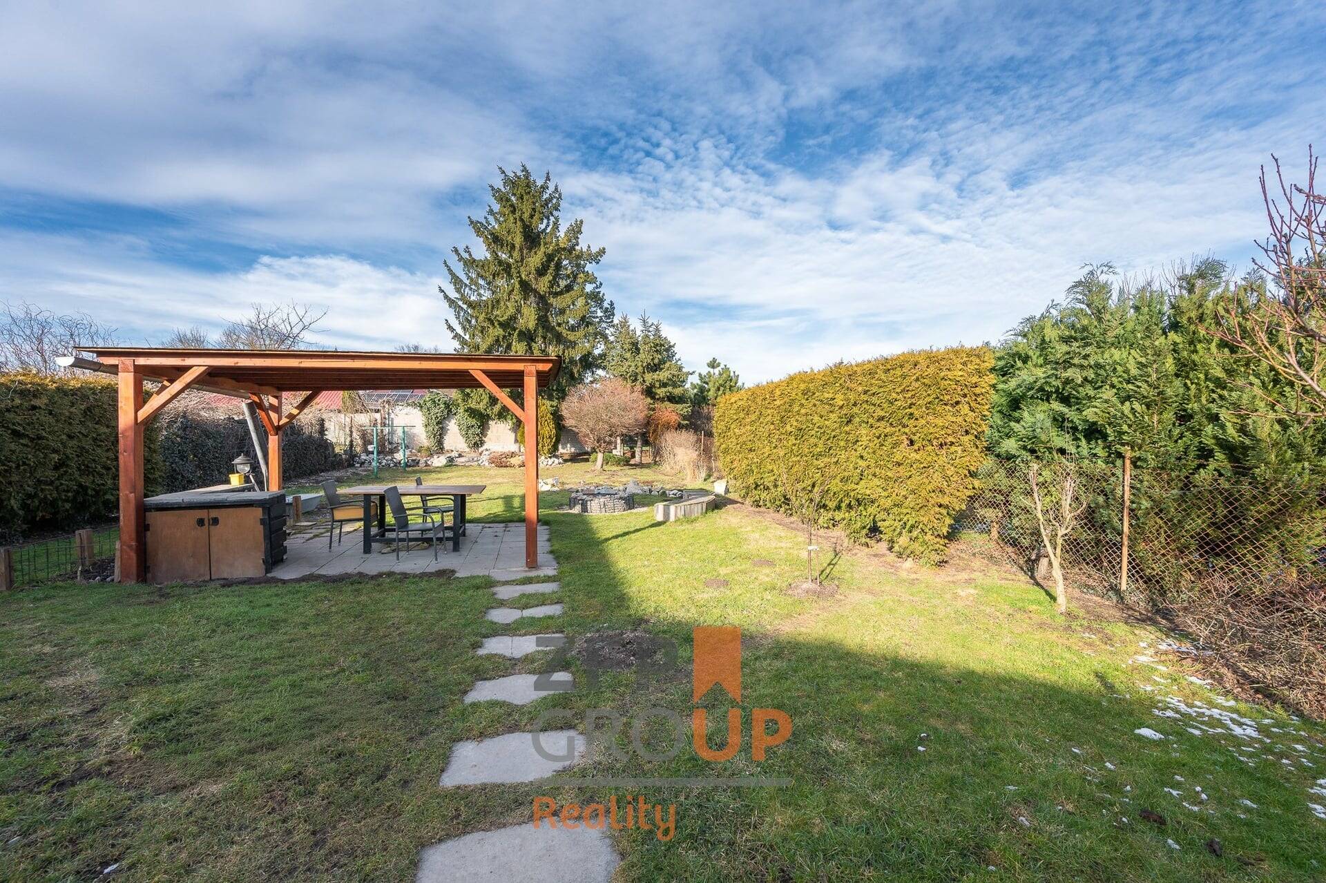Velkým benefitem je rovinatá zahrada, ideální pro relaxaci, rodinné aktivity či zahradničení. Součástí pozemku je také studna s vlastním zdrojem vody, což přináší úsporu nákladů a větší nezávislost. Dům nabízí nadstandardní množství úložného prostoru – k dispozici je šatna, spižírna, technická místnost, garáž i dílna.