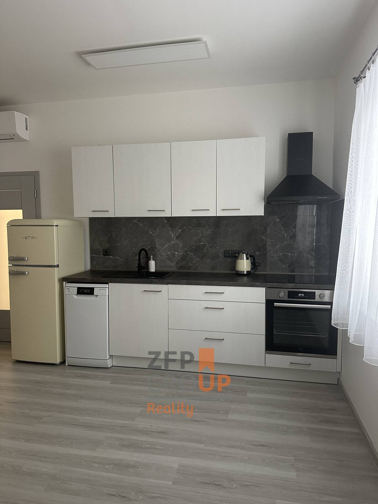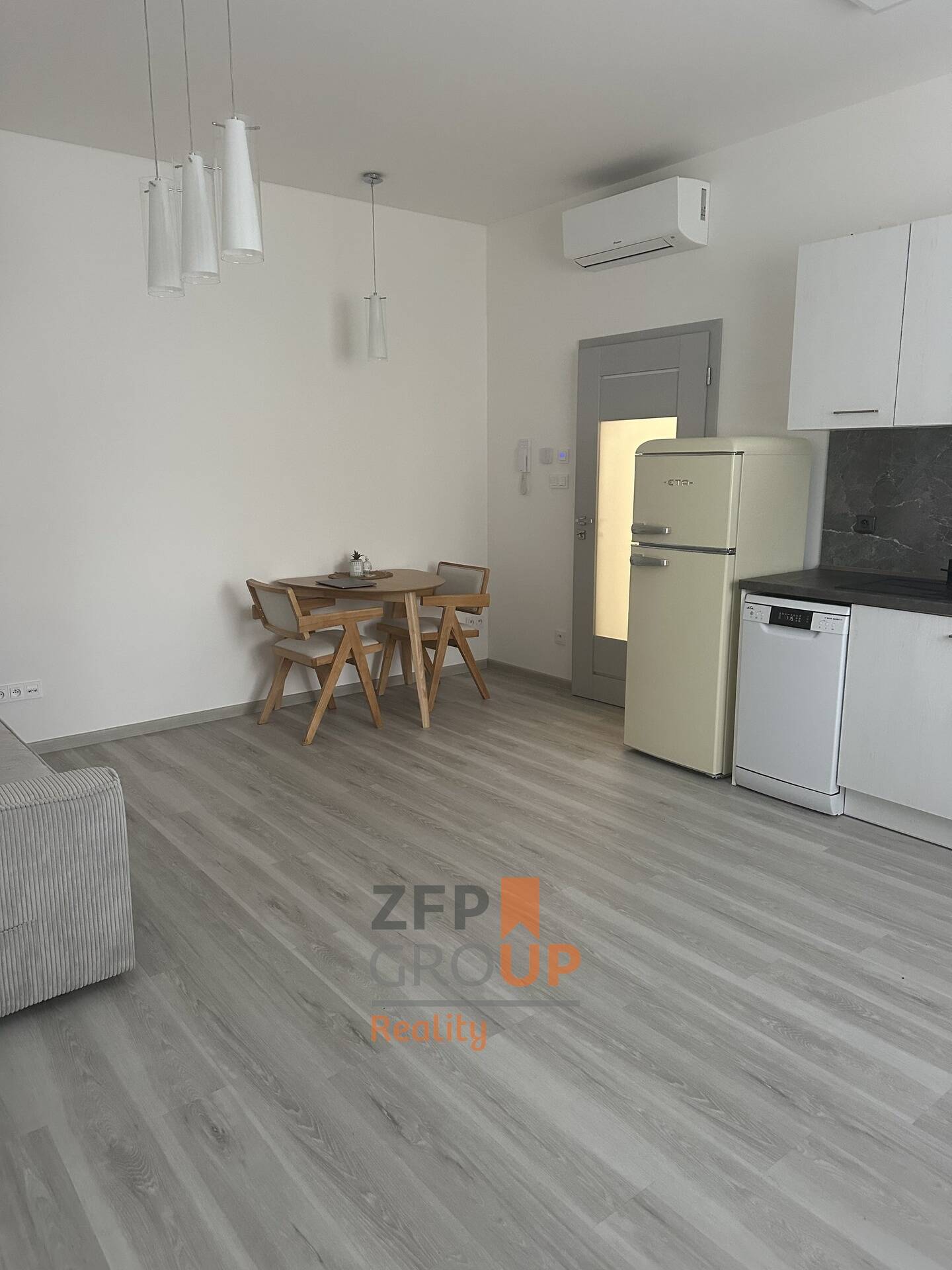 Byt se nachází v přízemí bytového domu (bez výtahu) a nabízí pohodlné a praktické bydlení. Dispozici tvoří obývací pokoj s kuchyňským koutem, samostatná ložnice, koupelna s WC a vstupní chodba. Kuchyňská linka je vybavena indukční deskou, troubou a myčkou, což zajišťuje komfortní každodenní užívání. Zbytek vybavení je současného nájemníka, není součástí pronájmu.