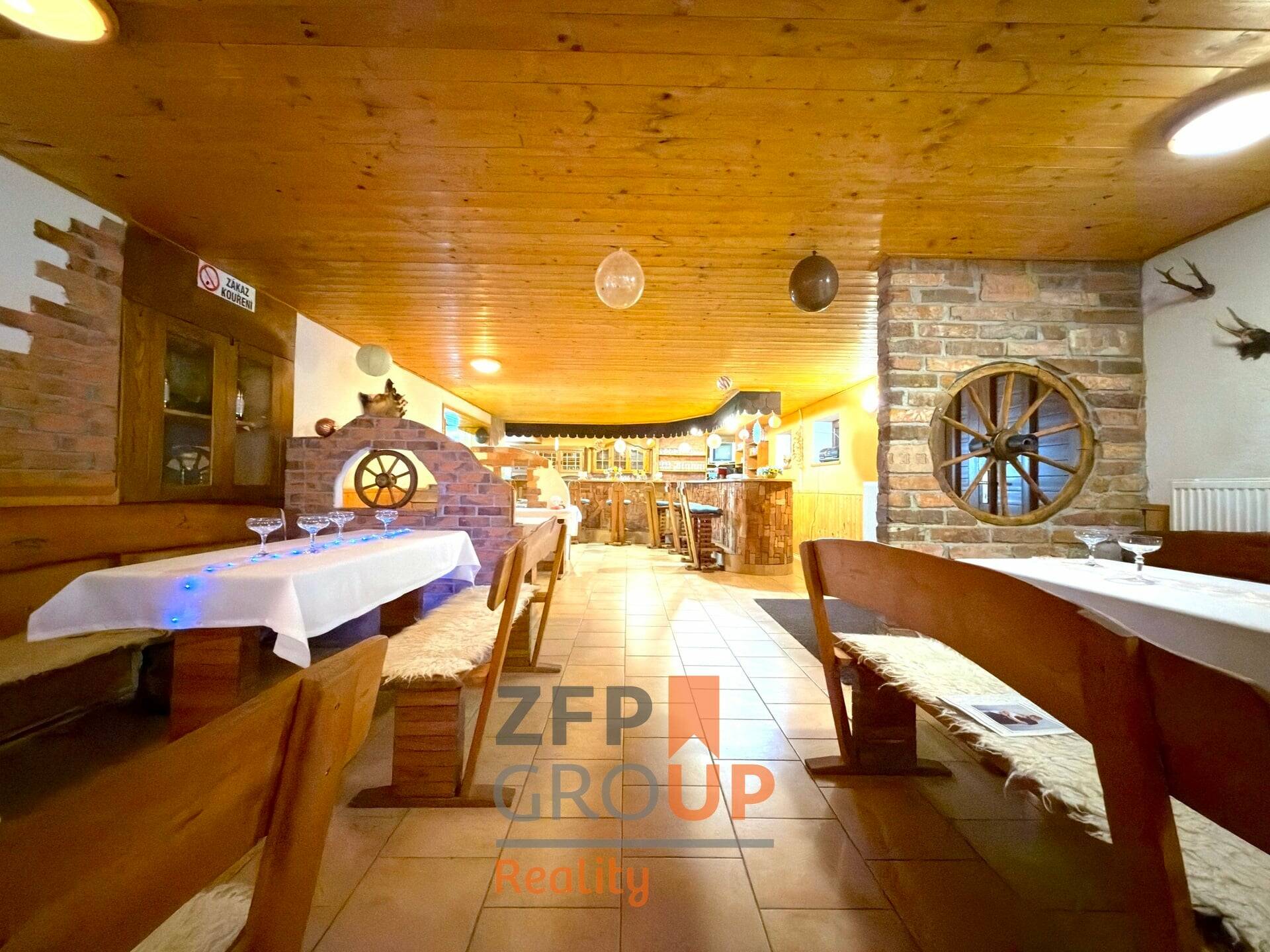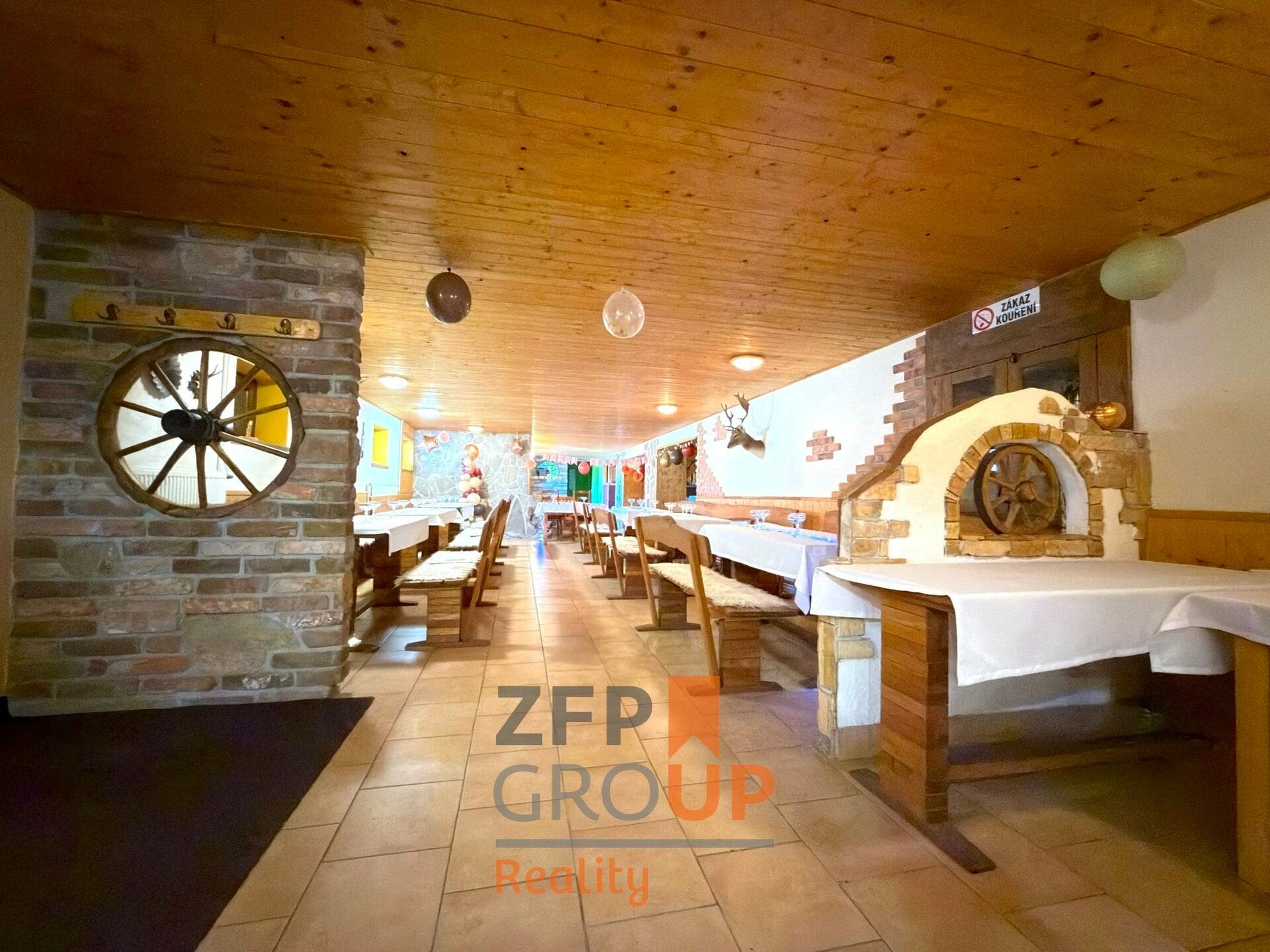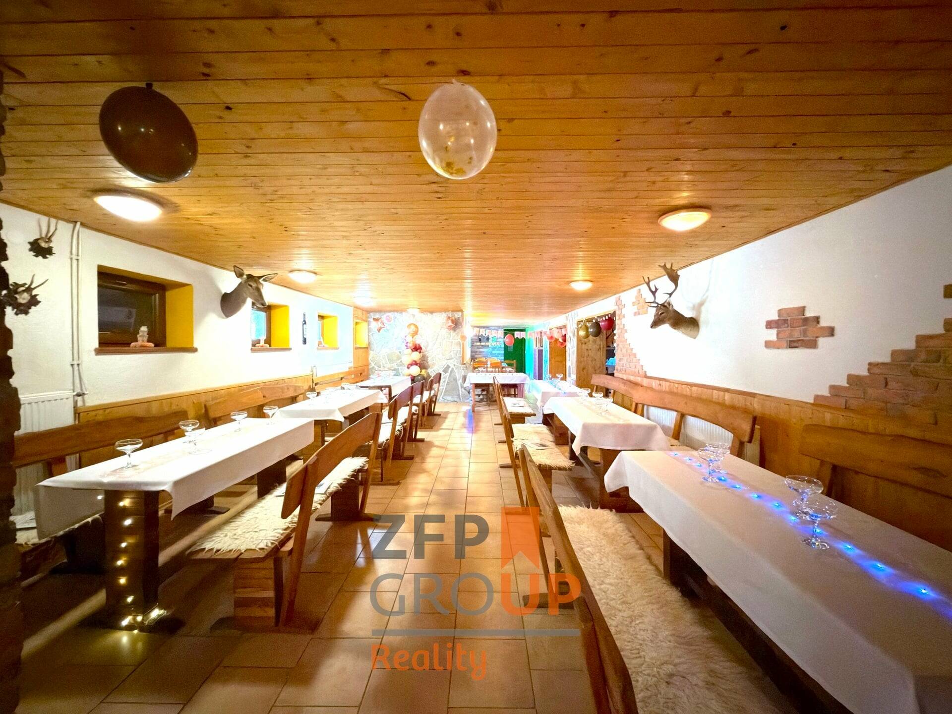 ● Profesní zázemí: skladové prostory, technické zázemí, 2 profesionální kuchyně, místnosti pro personál, zázemí majitele