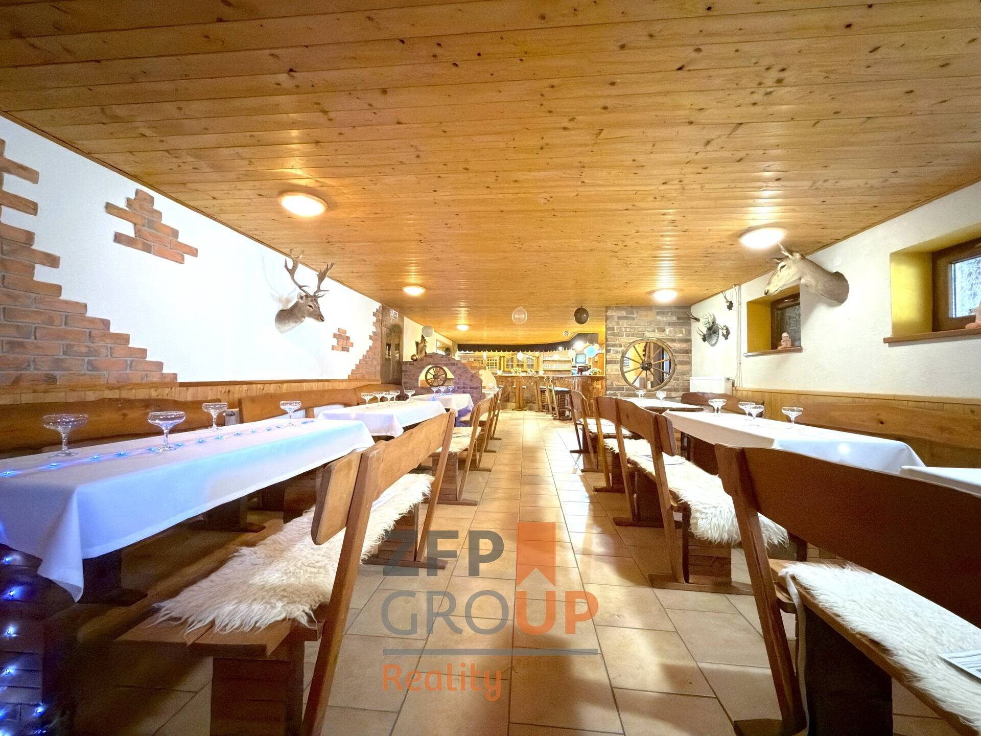 ○ Restaurace v 1. patře s venkovní terasou a vybavenou kuchyní