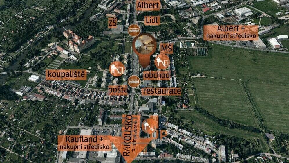 Okolí nabízí skvělou občanskou vybavenost, vše je na dosah, a zároveň je odsud rychlé spojení na rakouské hranice, kam dojedete zhruba za 10 minut.