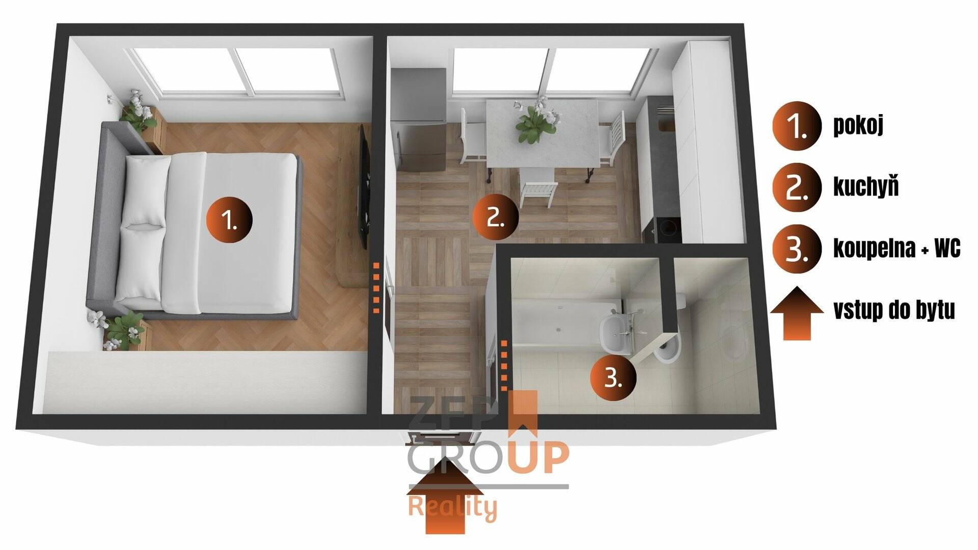 Pronájem bytu 1+1 o rozloze 31 m², ulice Dukelských bojovníků, Znojmo