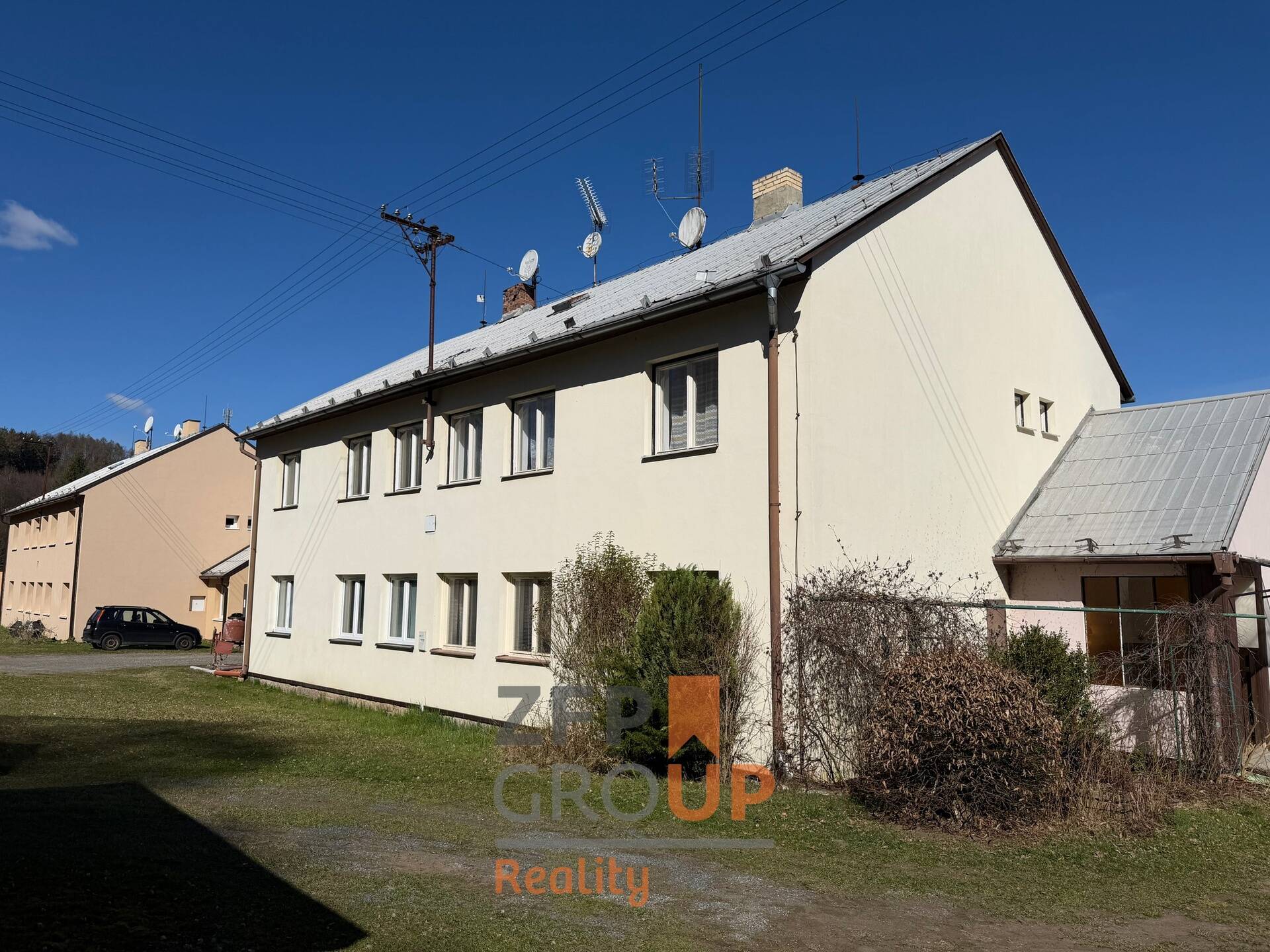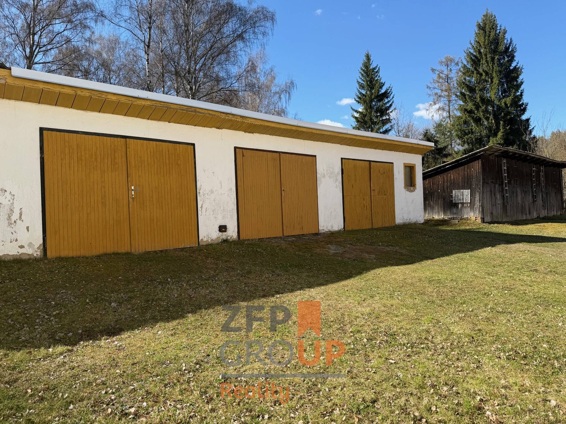 K bytu dále náleží garáž, pod kterou se nachází sklep, a také tři kůlny (dříve využívané jako dřevníky), které poskytují opravdu velkorysé možnosti uskladnění – ať už pro nářadí, kola, dřevo nebo sezónní vybavení.