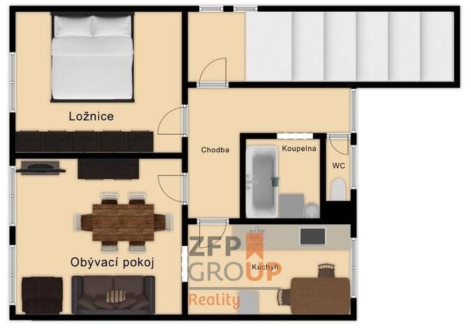 Byt disponuje prakticky řešenou dispozicí, která nabízí dostatek prostoru jak pro jednotlivce či pár, tak i pro menší rodinu. Samostatná kuchyně umožňuje pohodlné vaření i umístění jídelního stolu, obývací pokoj poskytuje ideální zázemí pro každodenní život a ložnice zajišťuje klid pro odpočinek. Díky velikosti 68 m² působí byt vzdušně a nabízí dostatek místa pro realizaci vlastních představ o bydlení.