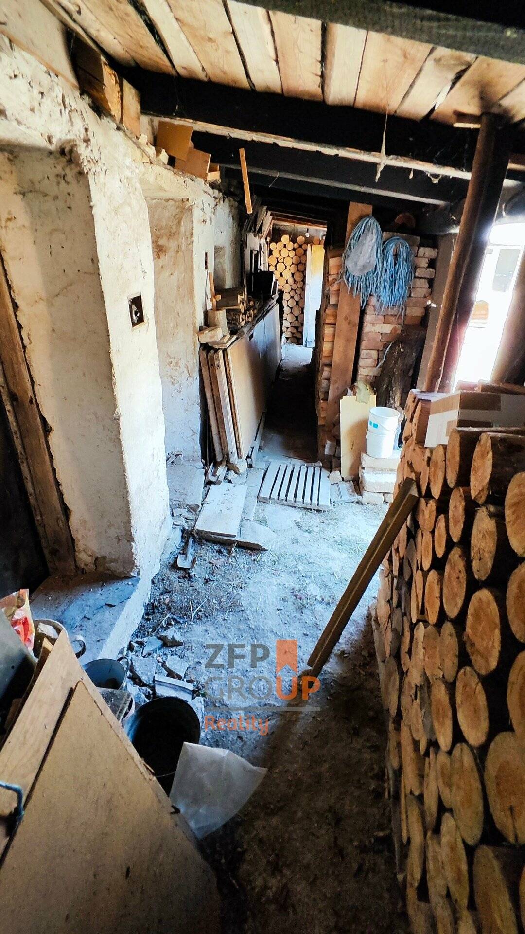 • Obytná část: obývací pokoj s krbem, kuchyně a koupelna s WC (původní stav)