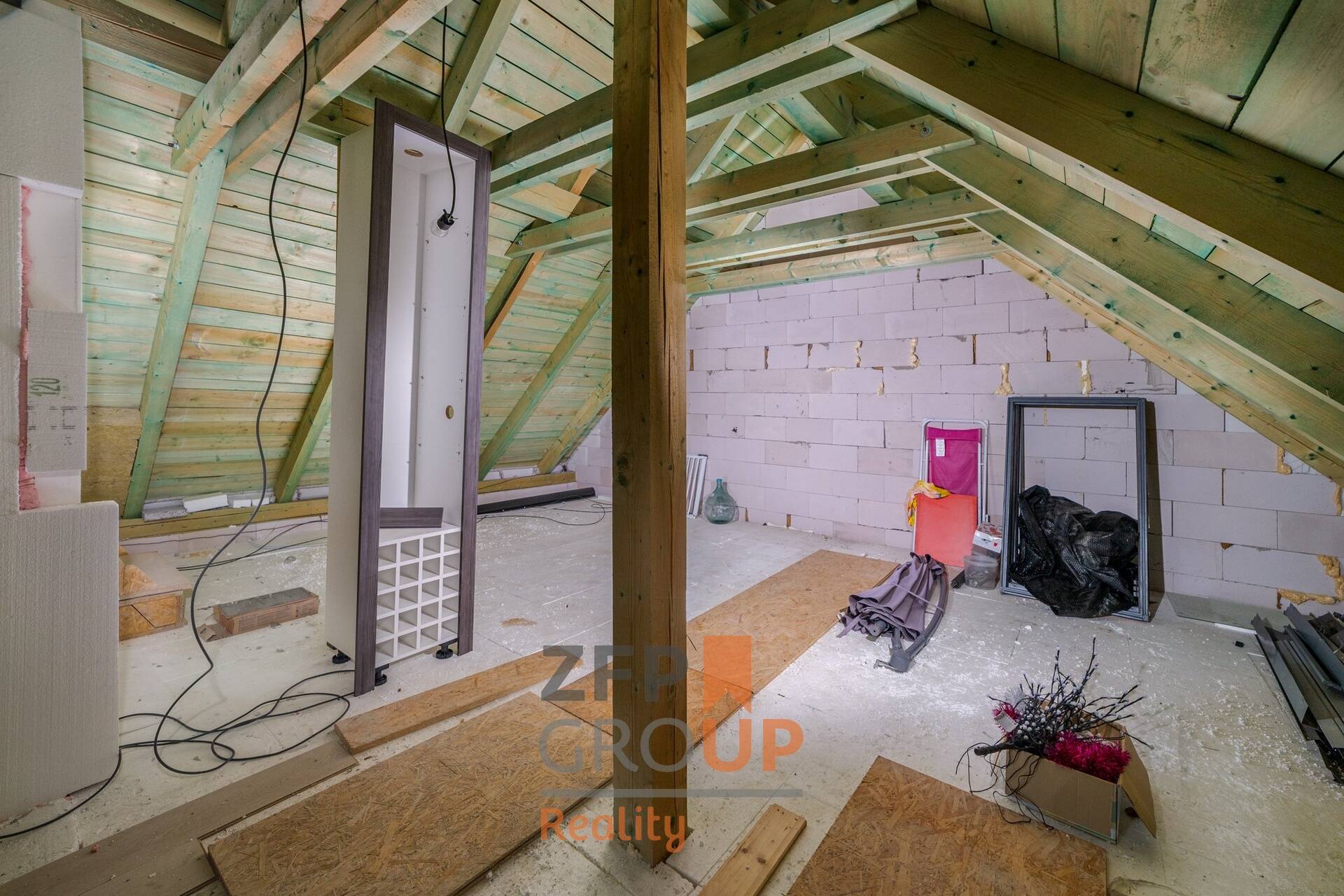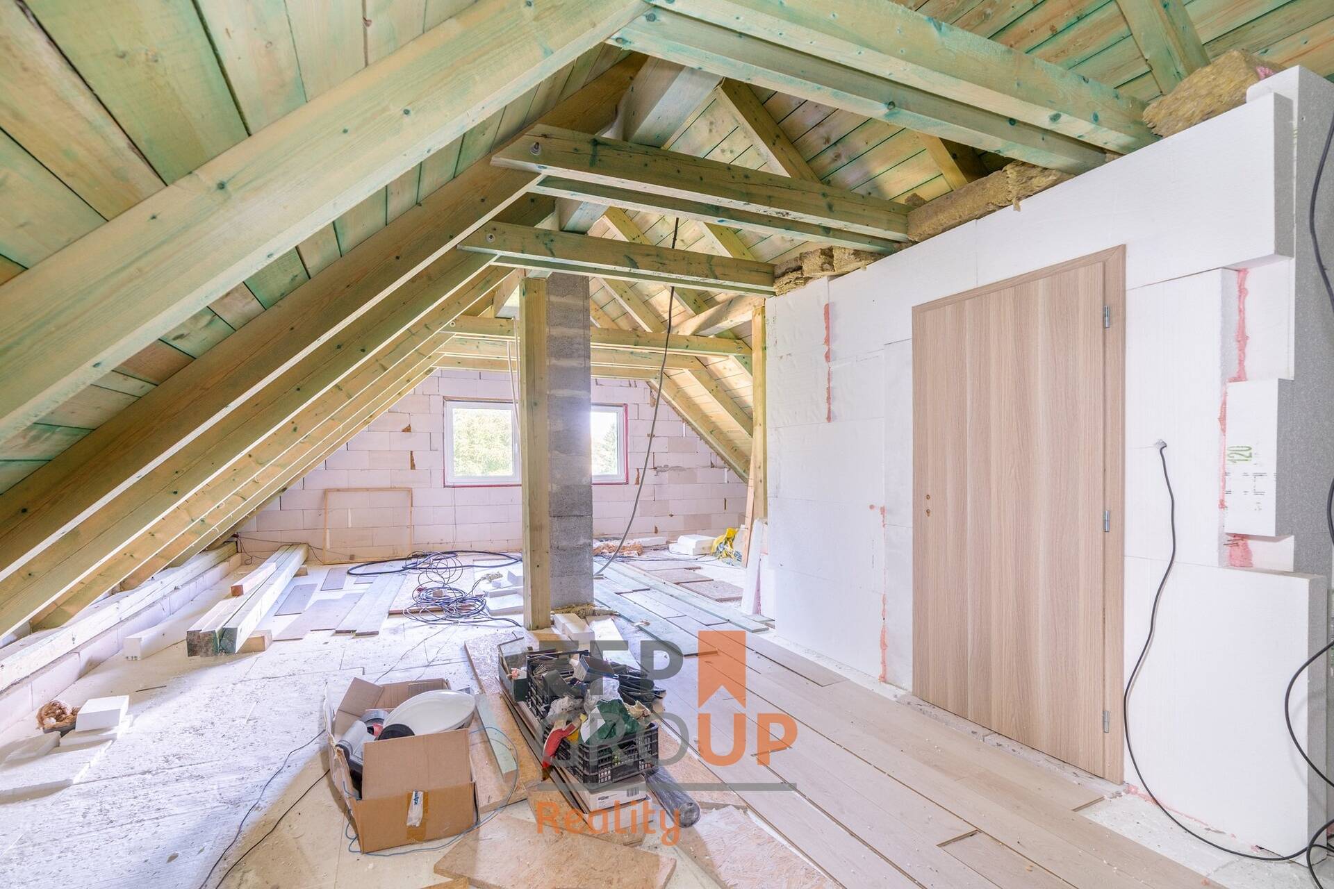 Jednotka 3 (půda): Půda s hotovými přípojkami k rychlé a snadné vestavbě třetí bytové jednotky.
