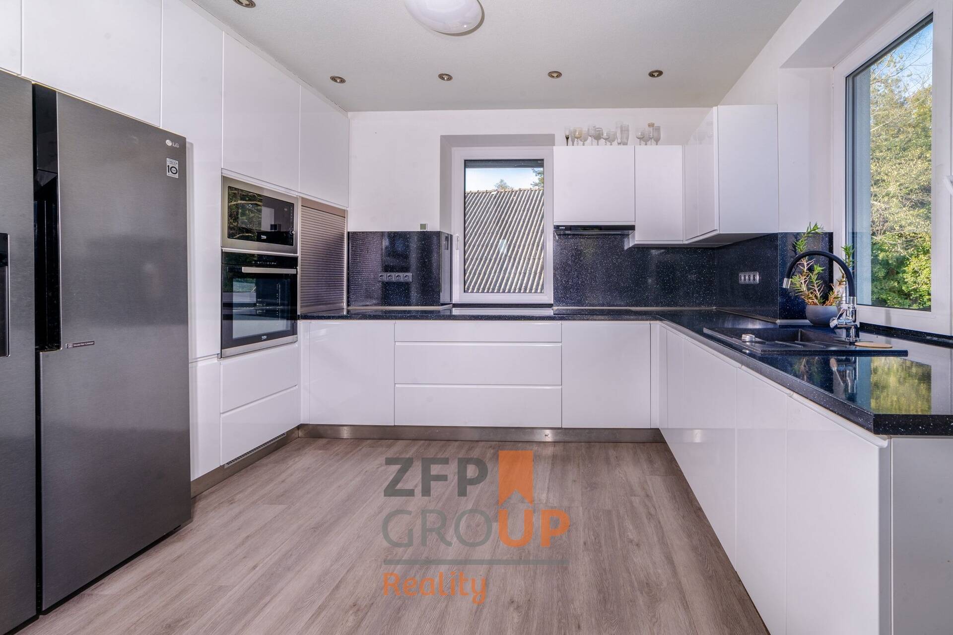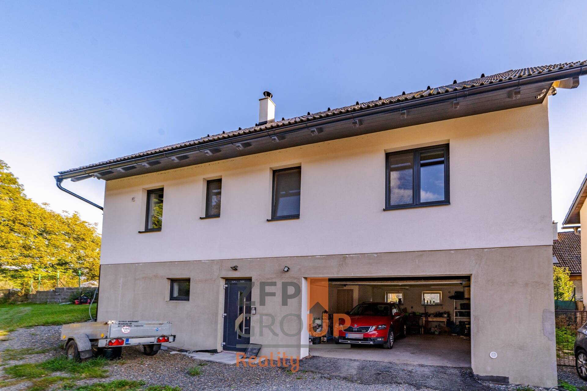 • Smart systémy: Podlahové vytápění, tepelné čerpadlo, krb s chytrým výměníkem a osvětlení jsou řízeny chytrou domácností.