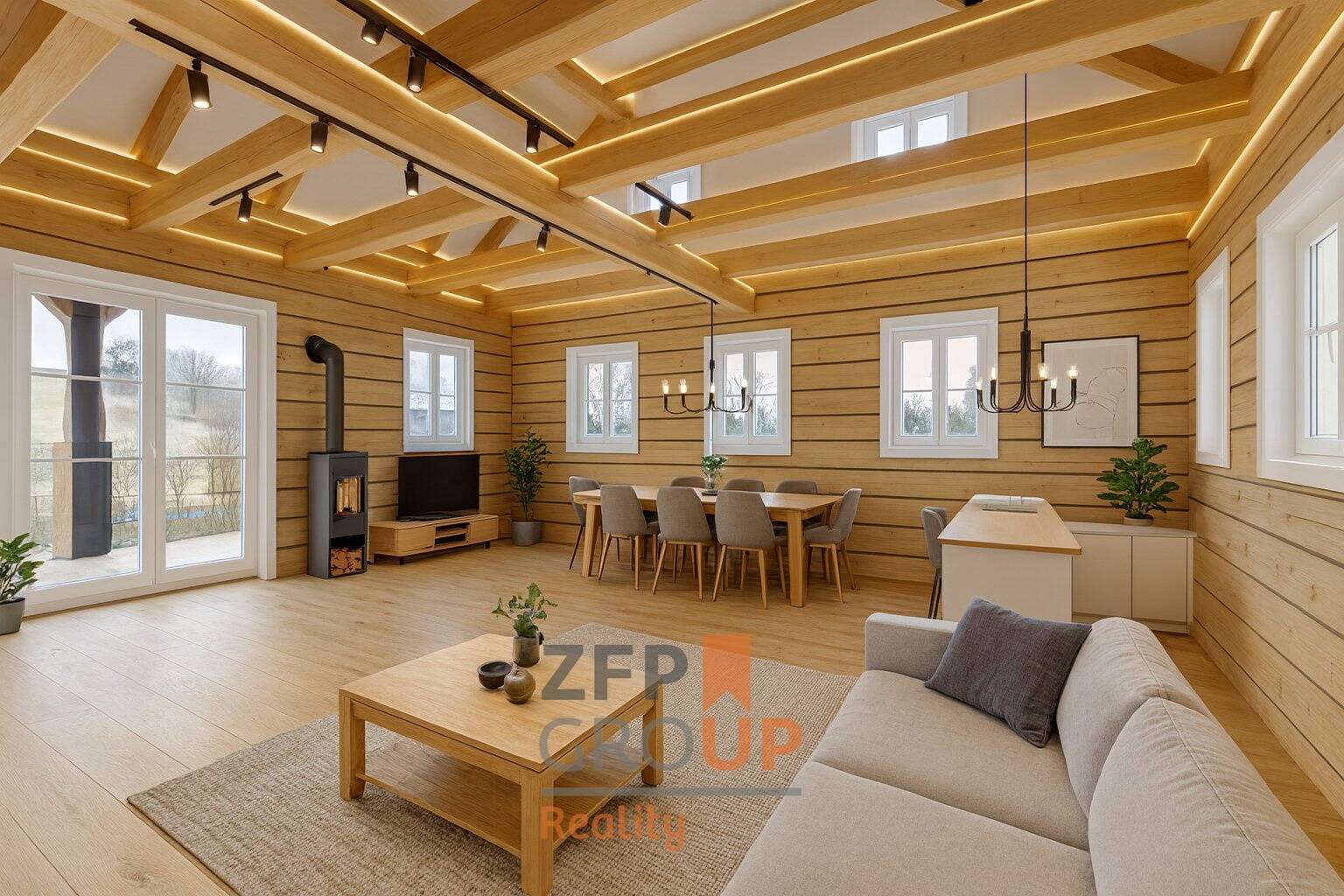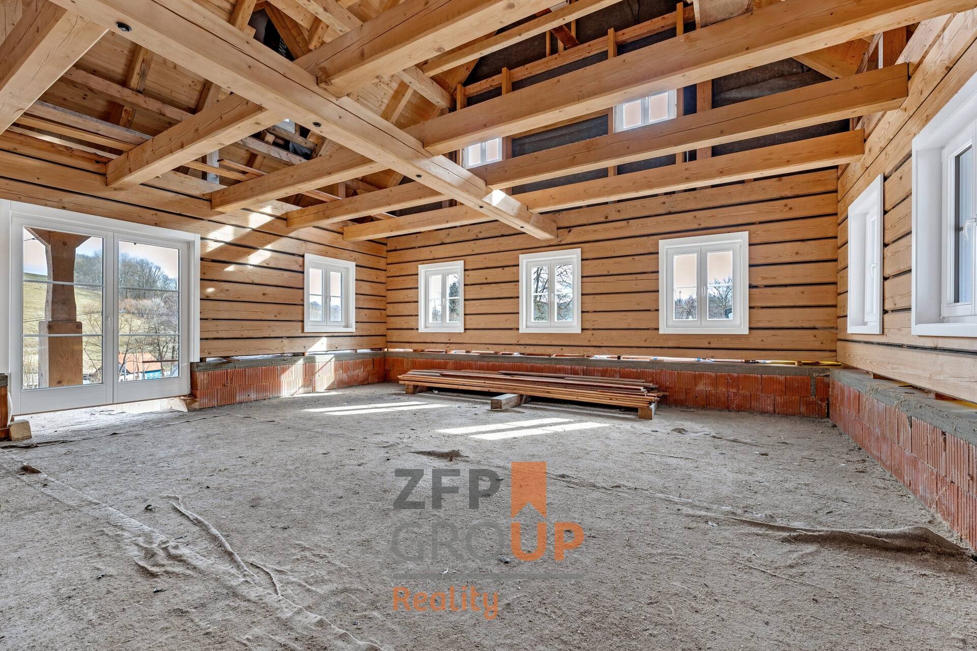 Nabízíme Vám novostavbu roubenky o dispozici 5+kk, kterou si můžete dokončit dle svých představ.