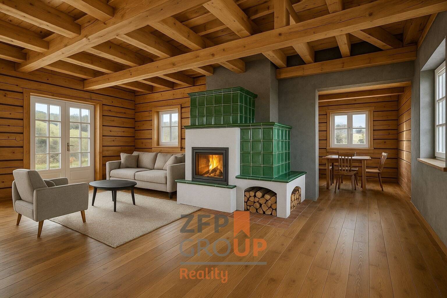 Nabízíme Vám novostavbu roubenky o dispozici 5+kk, kterou si můžete dokončit dle svých představ.