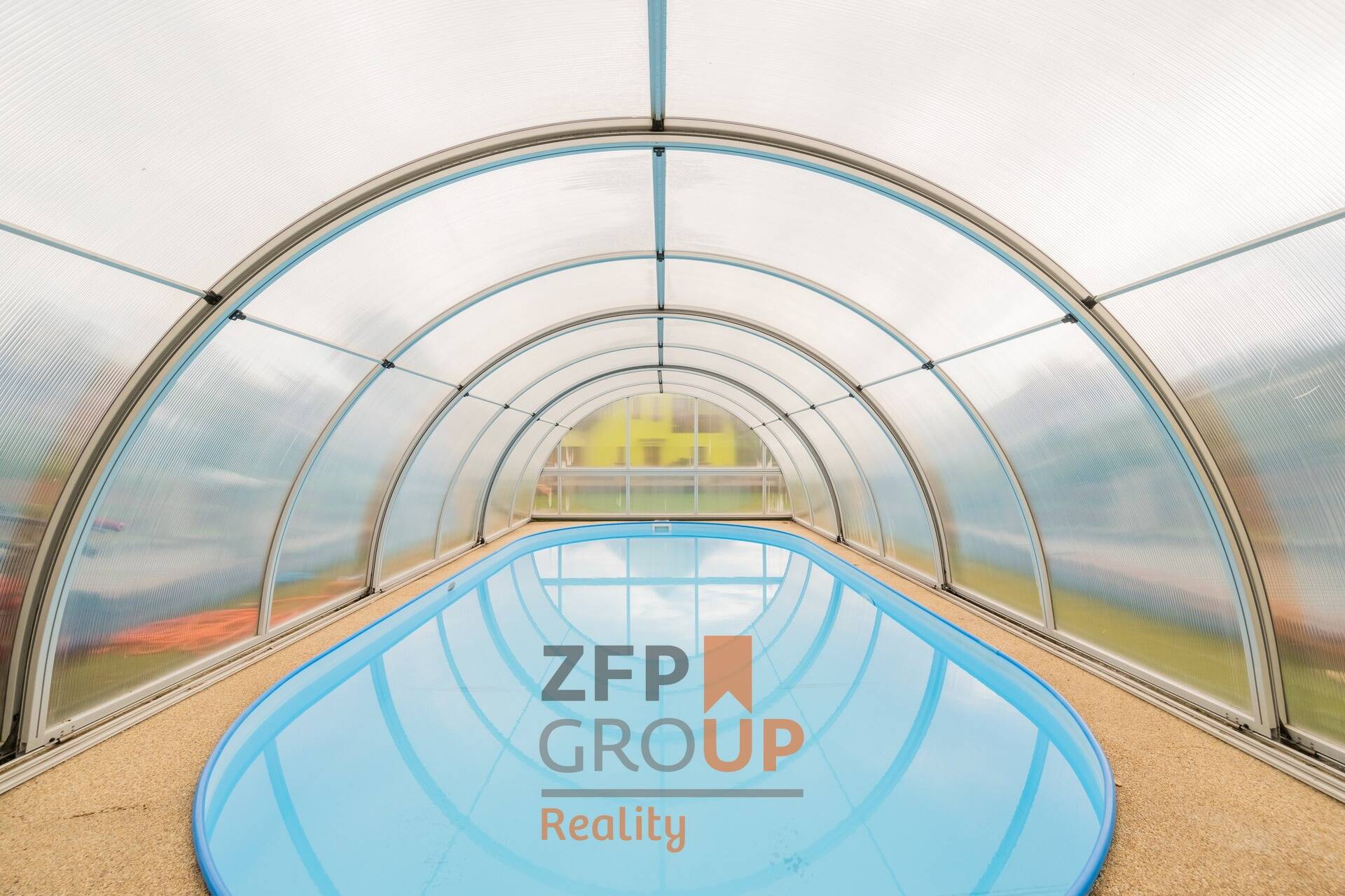 Milovníci komfortu jistě ocení samostatnou stavbu na pozemku, která slouží k odpočinku a rekreaci. Tato stavba zahrnuje wellness, zastřešený bazén a vnitřní část, která je vhodná i pro dočasné ubytování hostů.