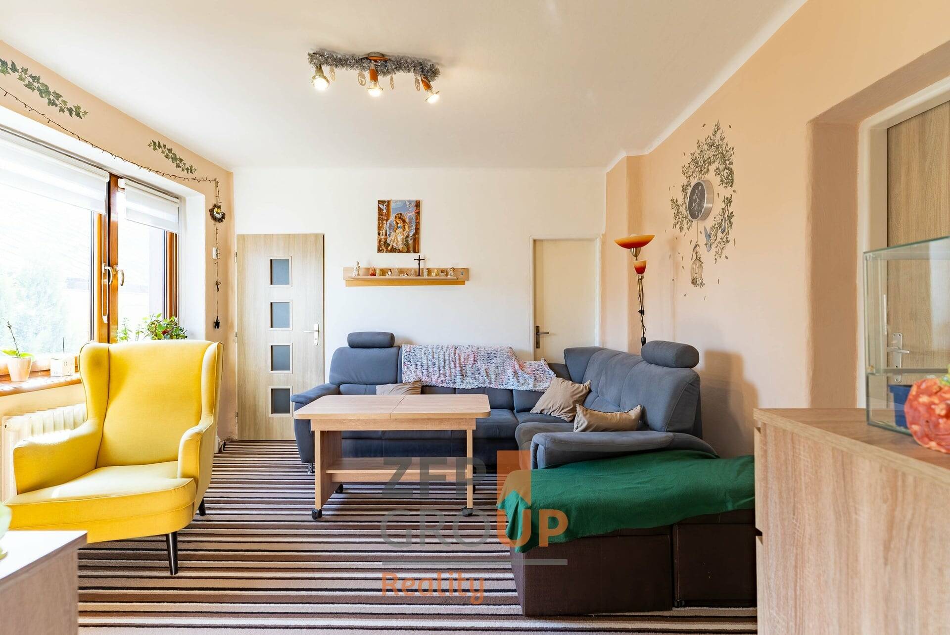 Dispozice domu je praktická a přirozeně odděluje společenskou a klidovou část. V přízemí se nachází velmi prostorná ložnice, obývací pokoj, nová kuchyňská linka, předsíň a koupelna a WC, které jsou oddělené a prošly velmi zdařilou rekonstrukcí. V prvním patře je jeden samostatný pokoj a další pokoj průchozí, navazující do třetí místnosti – ideální například jako dětské pokoje, pracovna, herna nebo ložnice s vlastní šatnou.