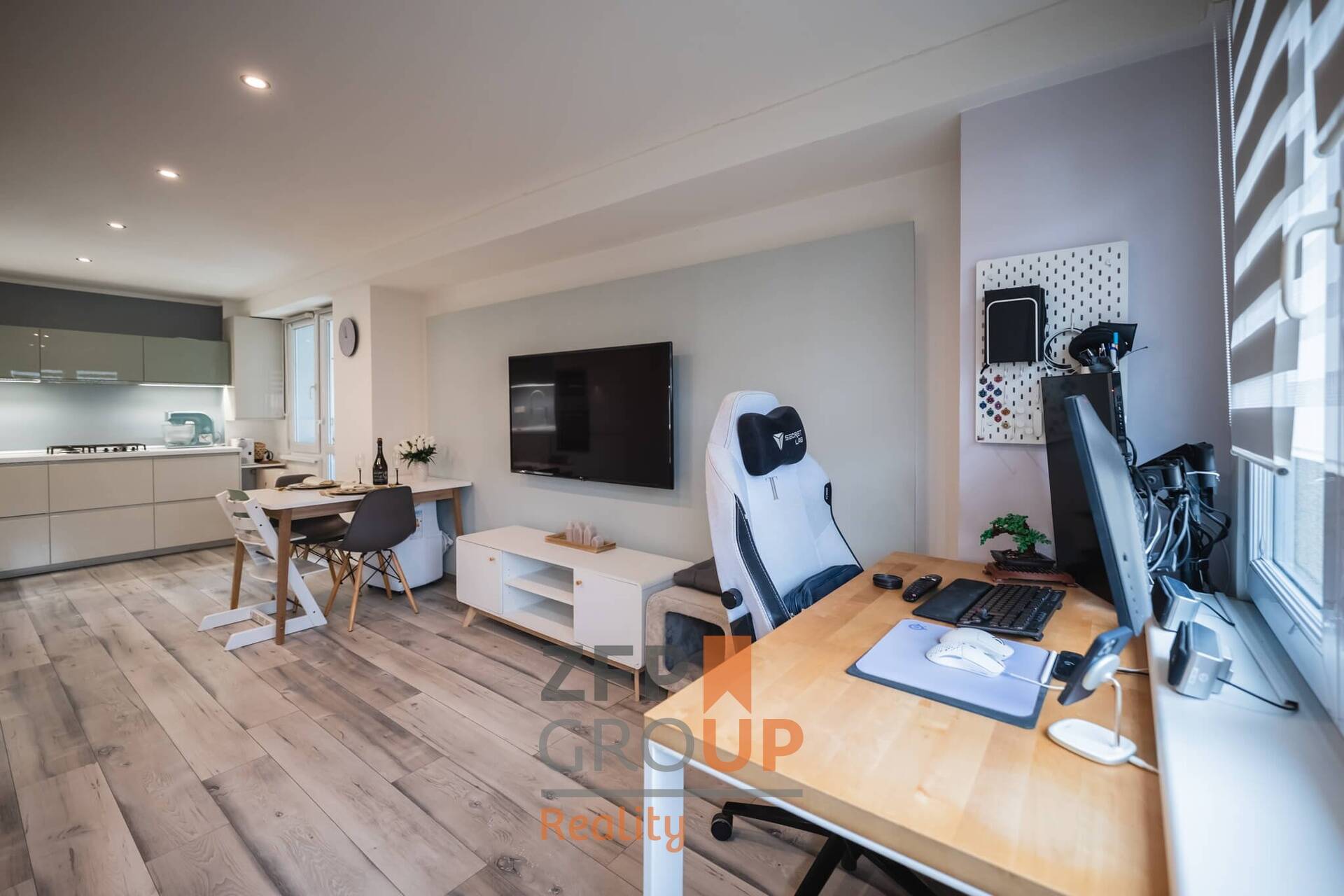Byt má efektivní dispozici, která nabízí dostatek místa pro každodenní život i práci z domova. Otevřený obytný prostor působí vzdušně a poskytuje prostor pro kuchyň, jídelní kout i obývací část. Samostatná ložnice zajišťuje klid a soukromí.