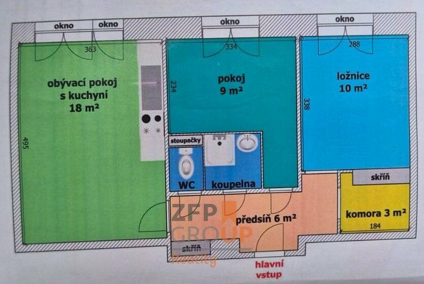 Nabízíme k dlouhodobému pronájmu velmi pěkný, světlý a prakticky řešený byt 3+kk o velikosti 50 m², umístěný ve 4. patře panelového domu s výtahem v klidné části Ostravy-Poruby.