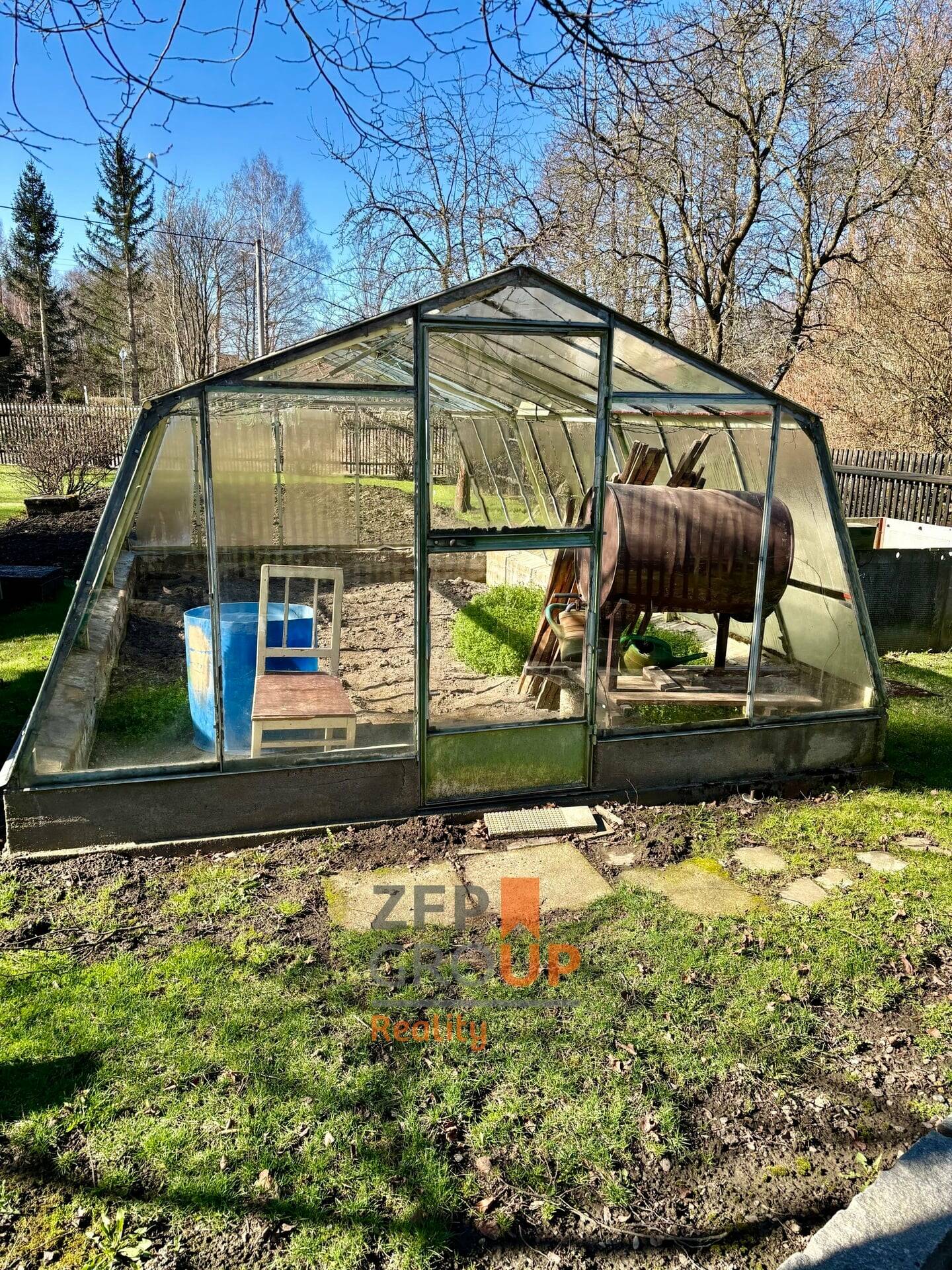 Pozemek udržované zahrady o výměře 427m2 s úrodnou bonitní zeminou je ohraničen dřevěným plotem na kovových a kamenných sloupcích. Jsou na ní, kromě smíšených trvalých porostů okrasných a ovocných dřevin, umístěny i vedlejší stavby jako je dřevěná zahradní kůlna o rozměrech 1,9x4,0 m a prostorný skleník 3,7x6,0 m. Celková plocha pozemku je 763 m2