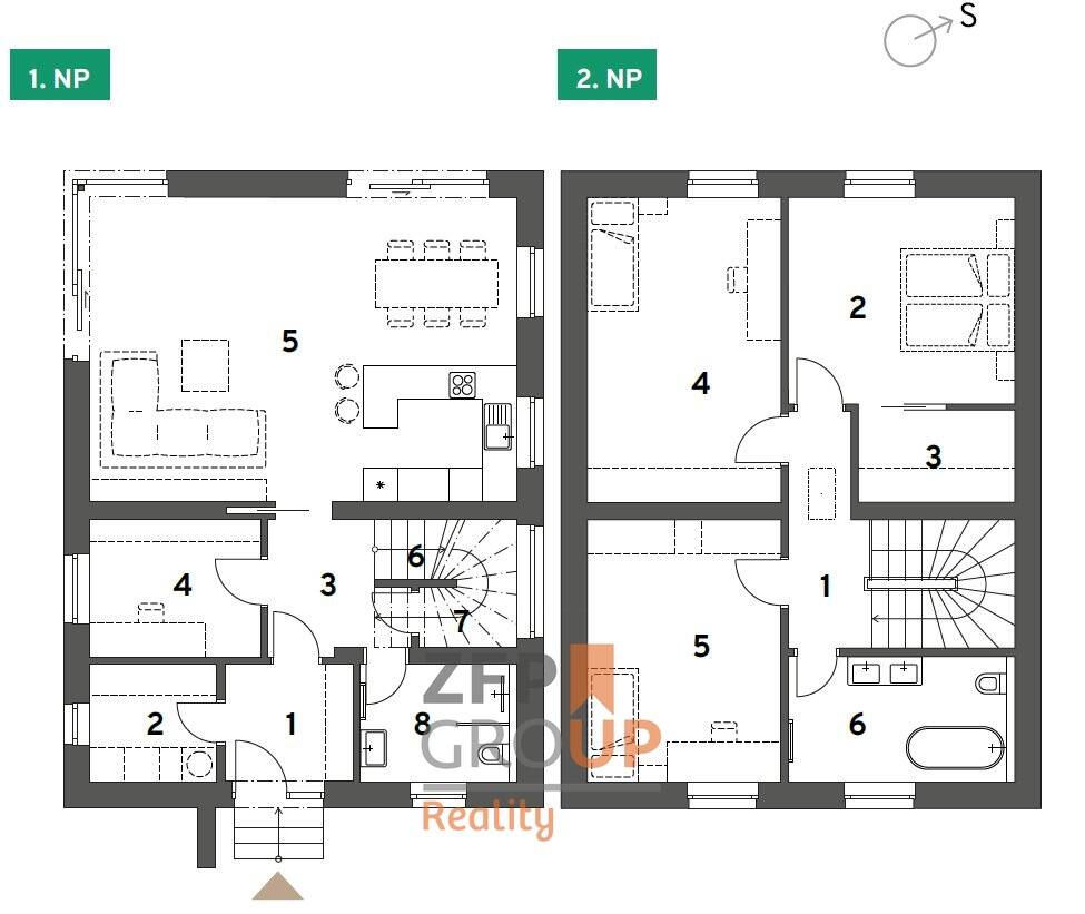 Tento nabízený dům má velice zajímavou polohu v rámci projektu a jeden z nejhezčích výhledů. Do domu se vchází vstupní chodou, dále následuje technická místnost s prádelnou, šatna, toaleta a velká obývací místnost s kuchyní. Garáž je vlastním vstupem propojena s chodbou domu a před garáží je dostatek místa pro další parkovací místo.