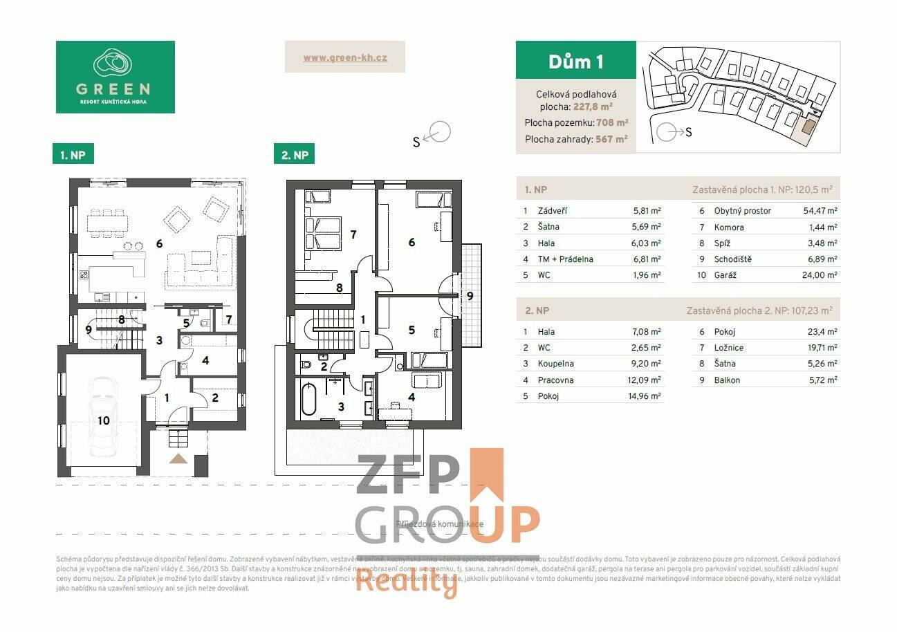 Zastavěná plocha domu je 141 m2, užitná plocha 1.NP je 120 m2, druhého 107 m2, plocha zahrady je 563 m2.