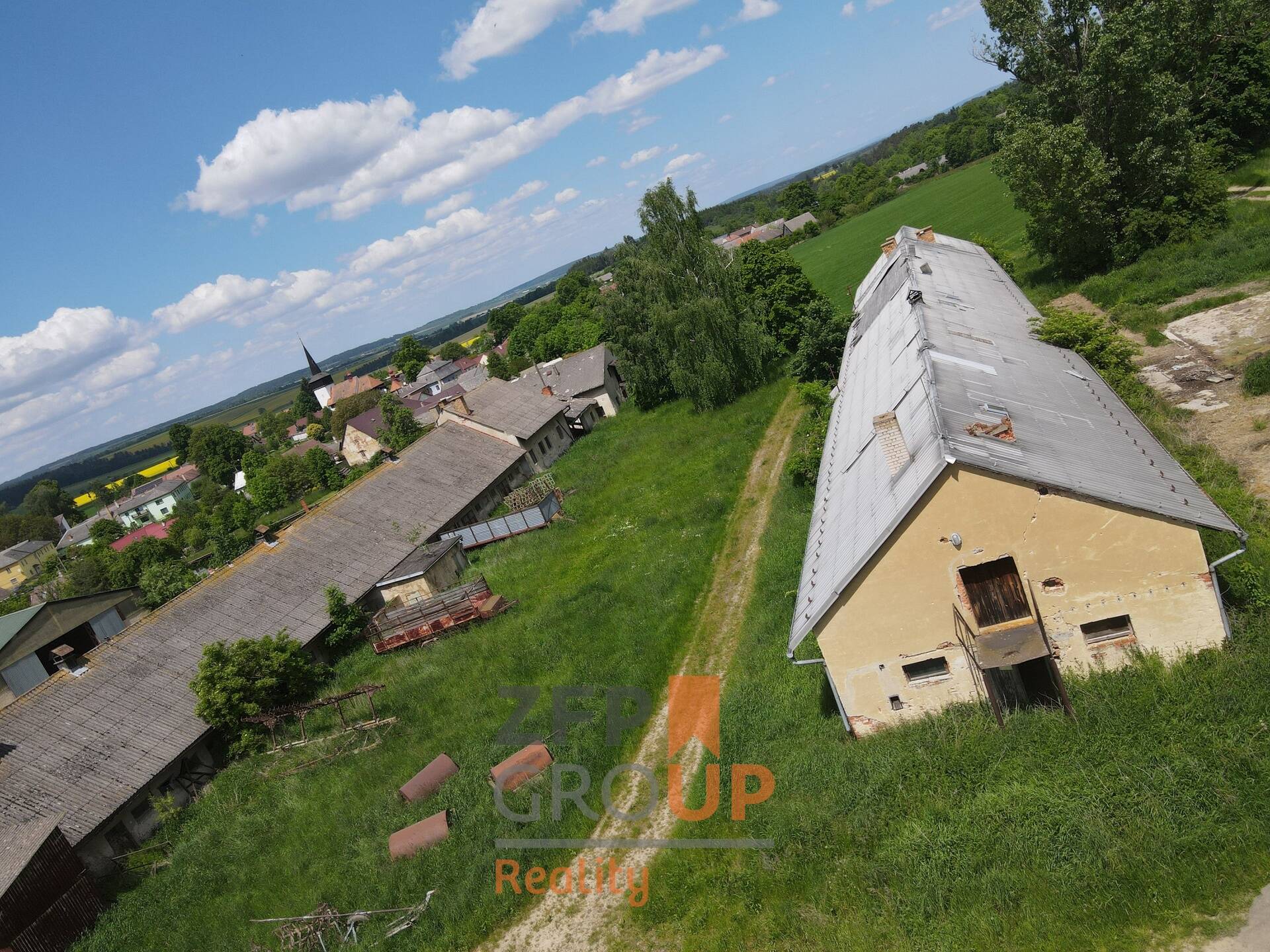 Prodej zemědělského objektu v obci Banín (Svitavy) o zastavěné ploše 1575 m² + přilehlé pozemky 4278 m²