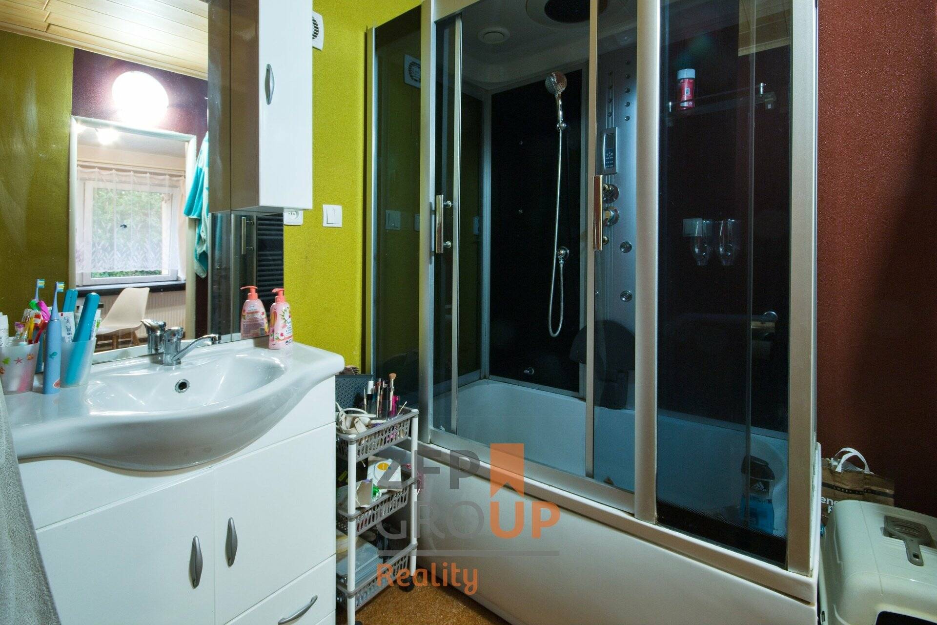V přízemí se nachází prostorná ložnice, obývací pokoj a velká samostatná kuchyň s jídelnou, která poskytuje dostatek místa pro společné stolování celé rodiny. Dále tu najdete koupelnu, samostatně stojící velký masážní sprchový kout a oddělené WC. Součástí přízemí je také místnost pro hosty, kterou lze využít jako pracovnu nebo pokoj pro návštěvy.