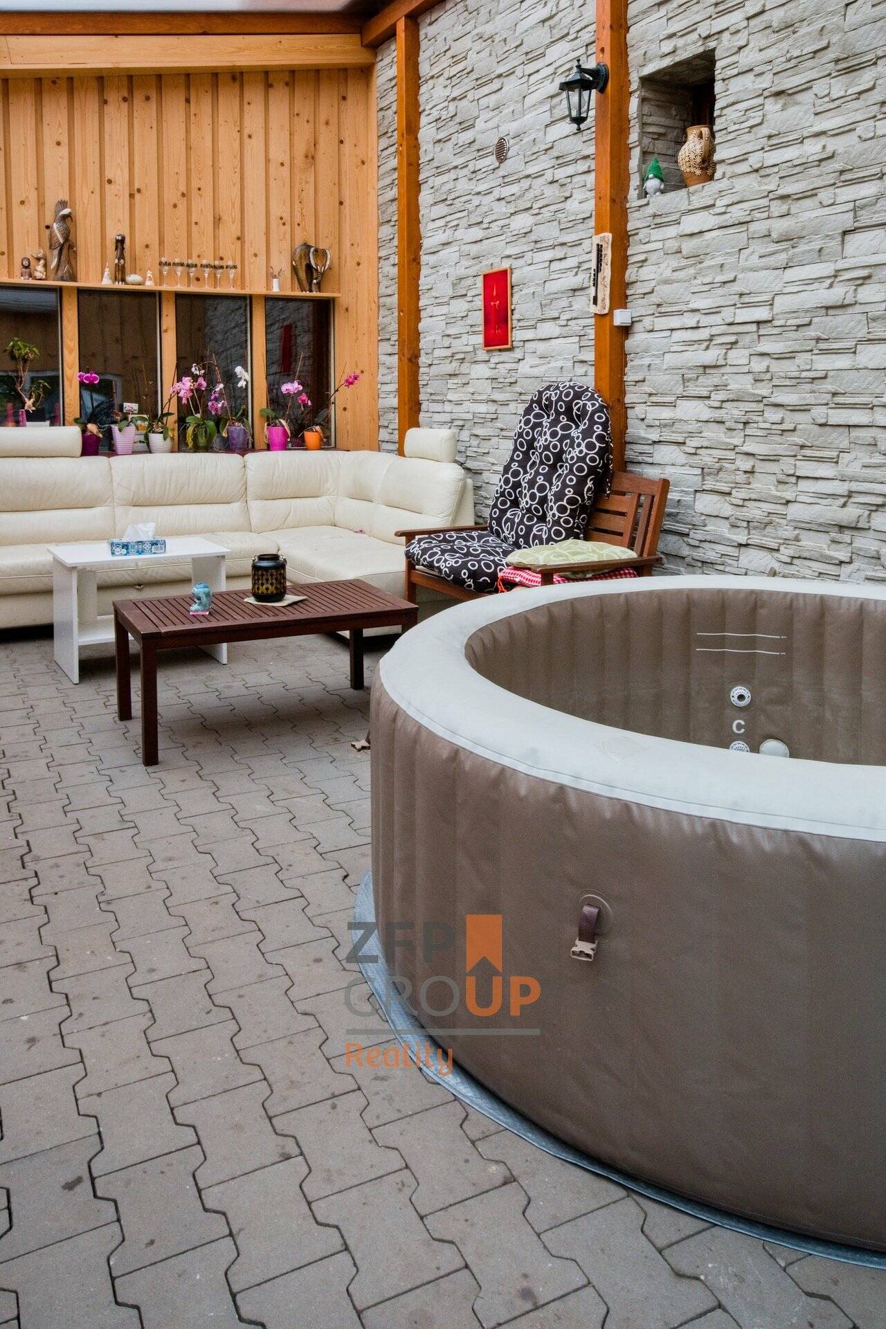 Jedním z největších lákadel domu je zimní zahrada, která nabízí dokonalé místo pro odpočinek v každém ročním období. Ze zimní zahrady lze projít do další místnosti s kuchyňskou linkou, která navazuje na prostor s prostornou udírnou a krbem – ideální kombinace pro milovníky dobrého jídla a přátelských posezení.
