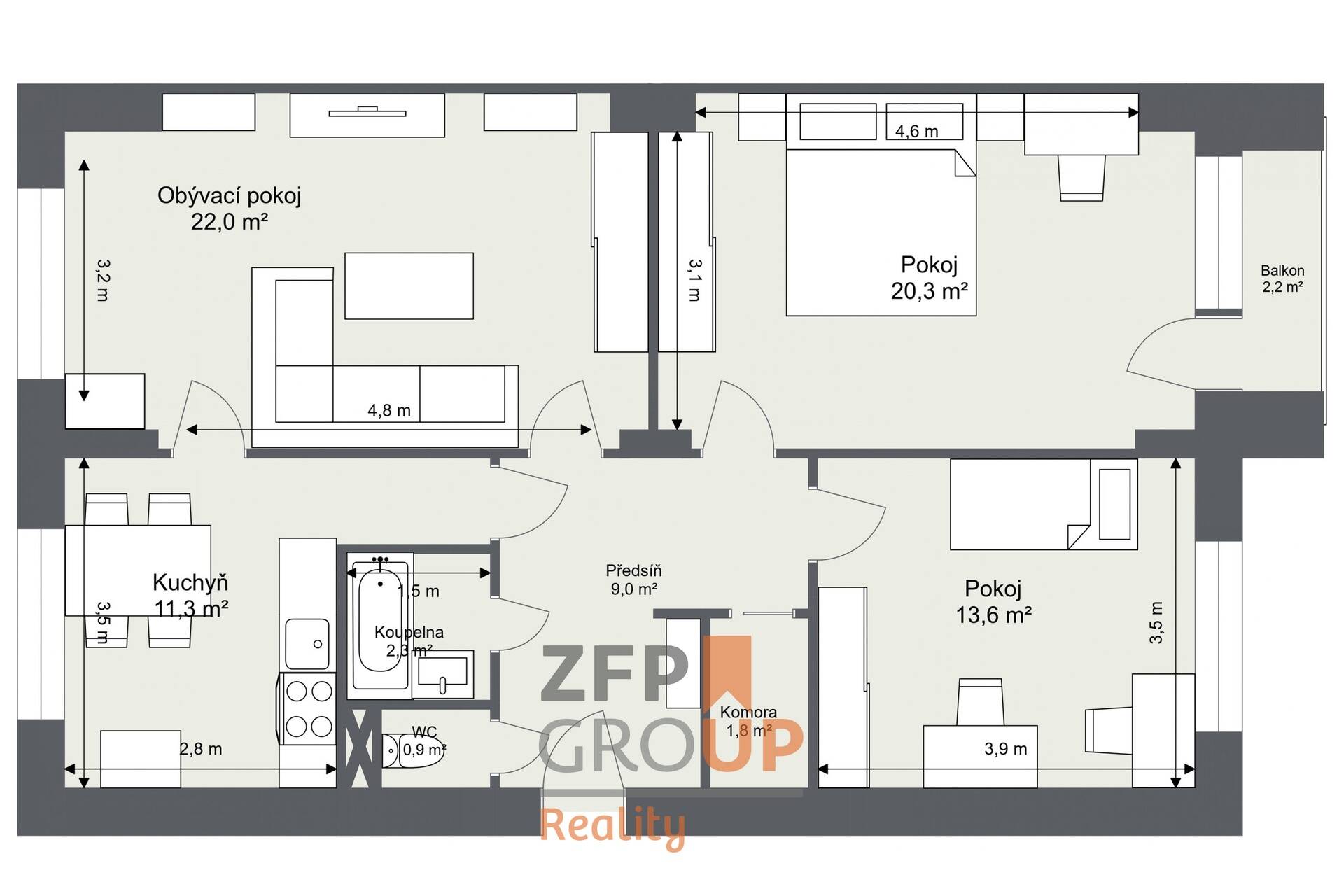 • pro investora (velmi dobře pronajímatelná dispozice)