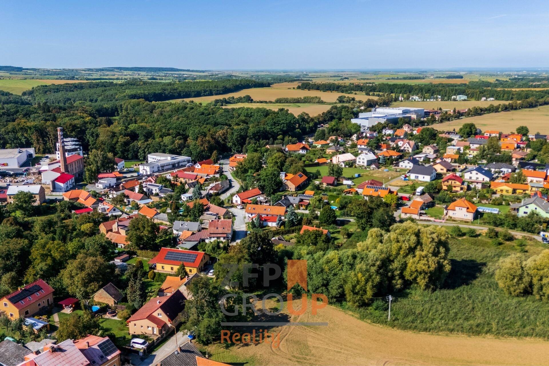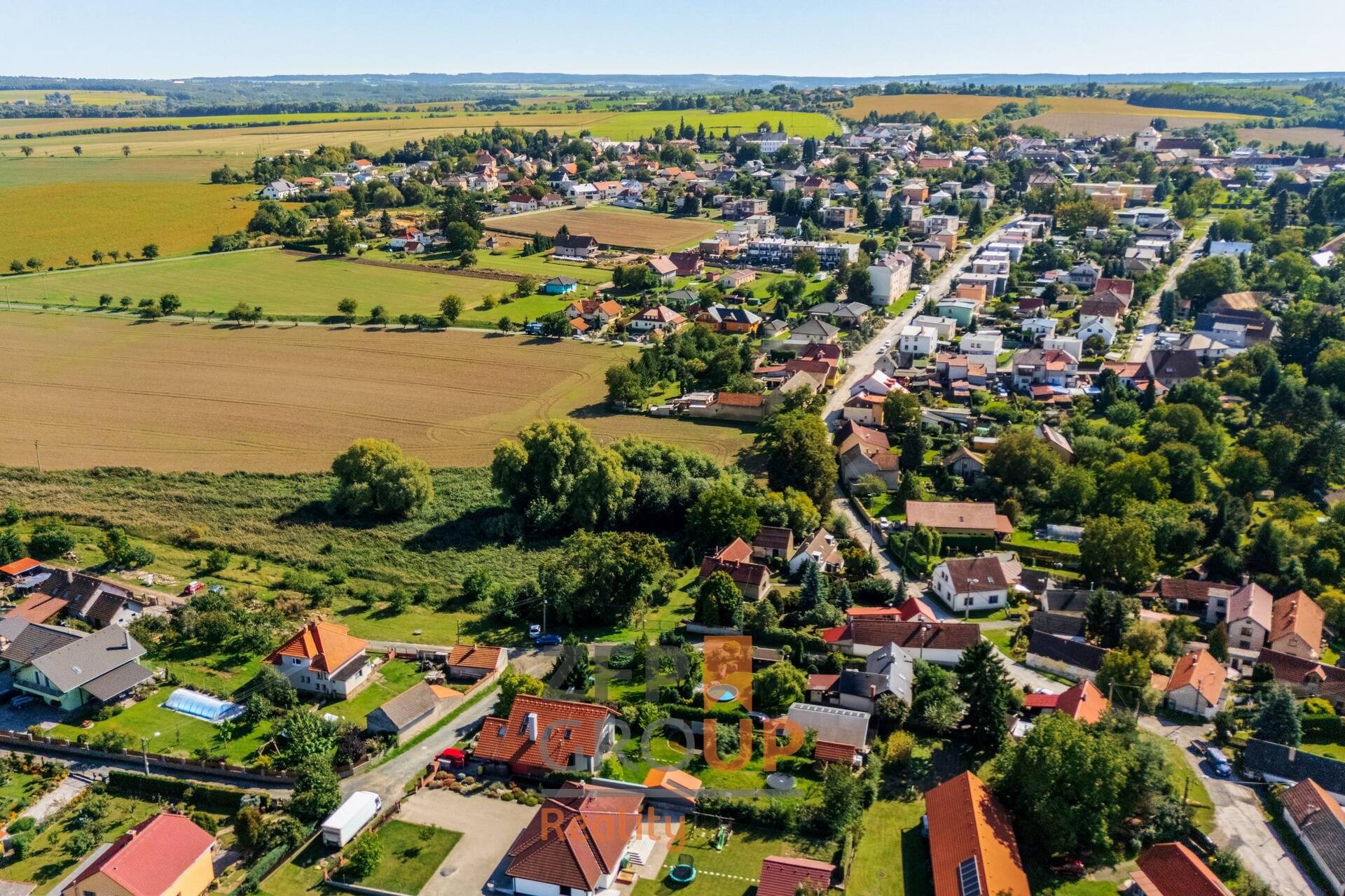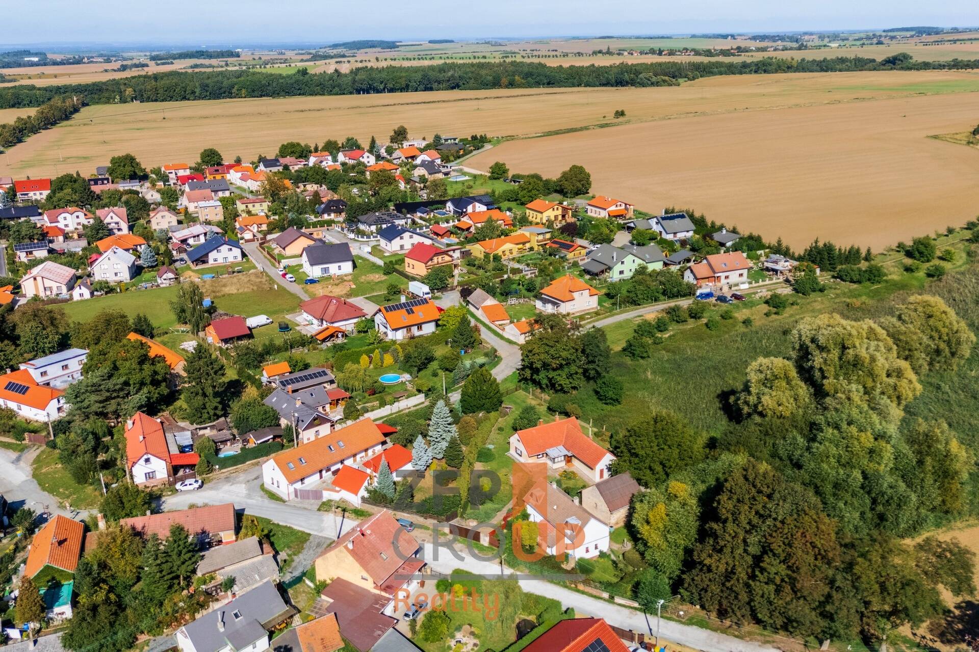 - V okolí není souvislá zástavba – cca polovina přilehlých ploch je zeleň, což zajišťuje soukromí a vzdušnost.