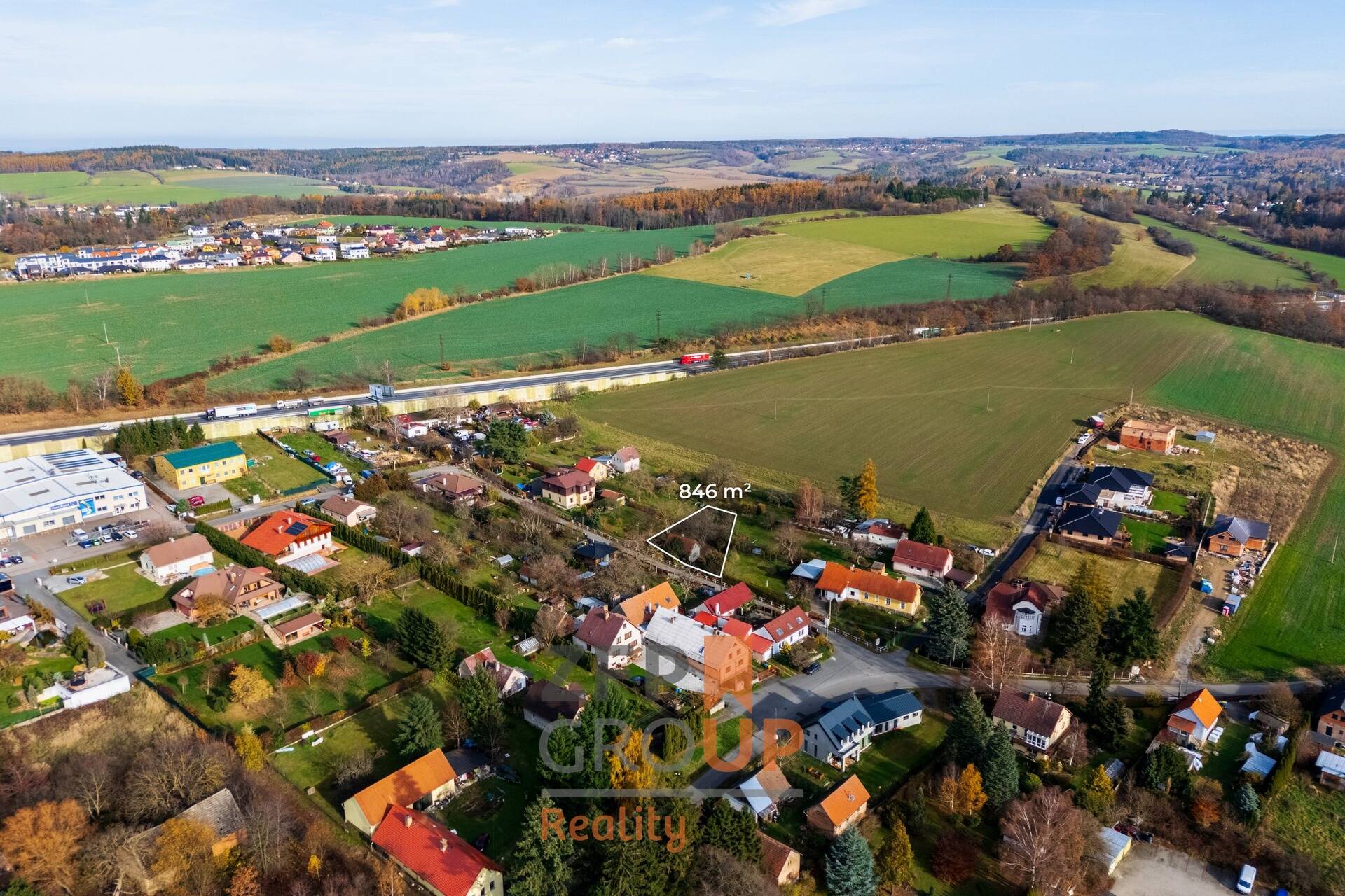 846 m² plochy, až 40 % zastavitelnosti, tedy prostor pro moderní rodinný dům, zahradu, bazén nebo velkorysé venkovní zázemí.