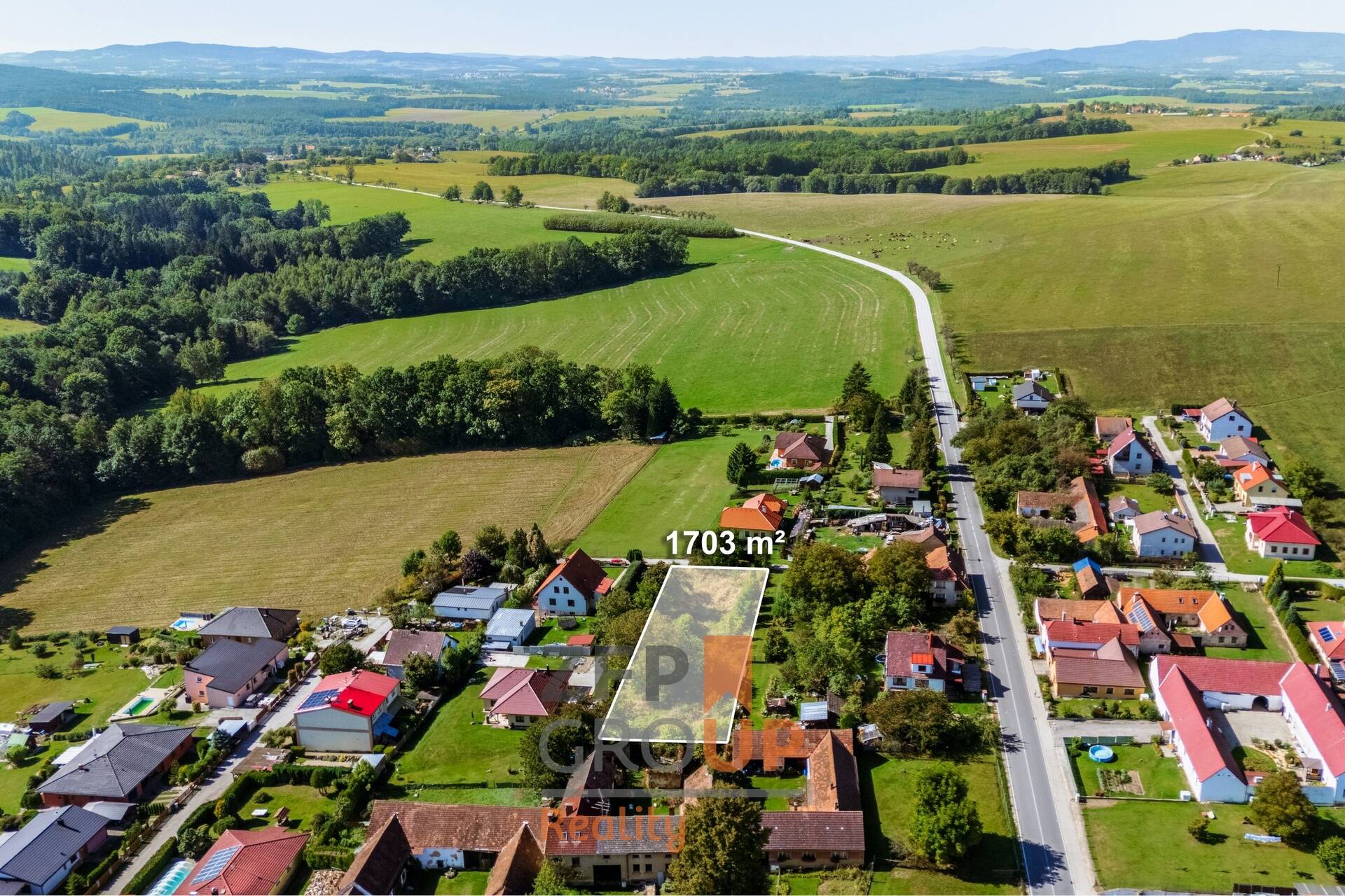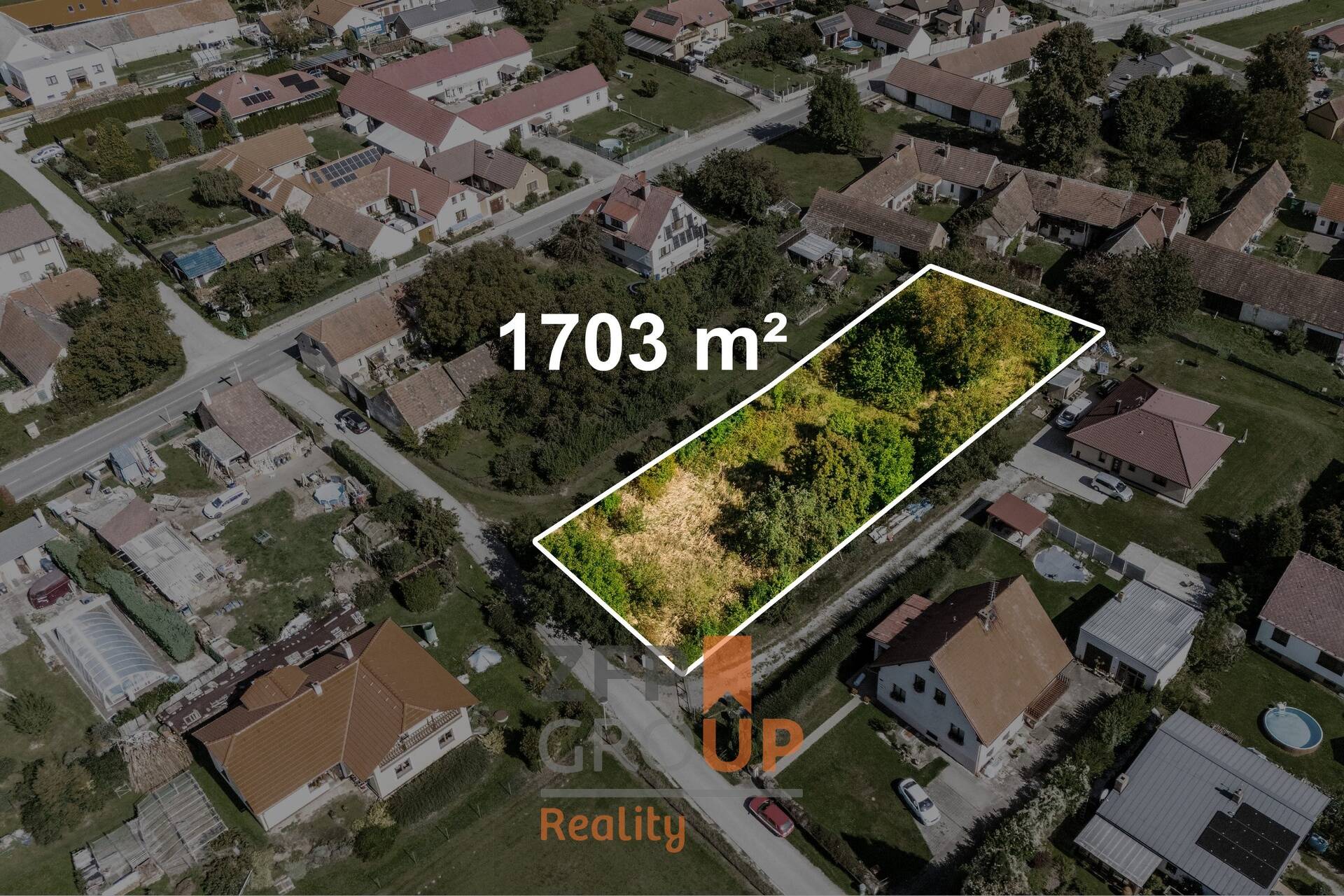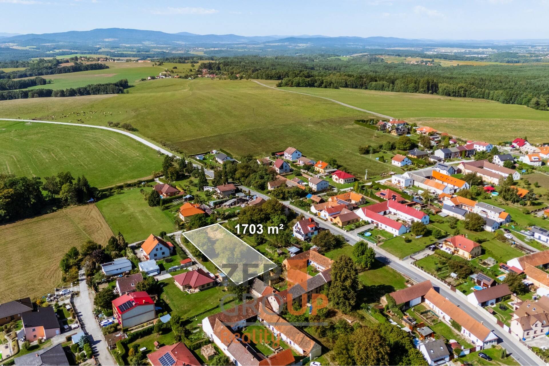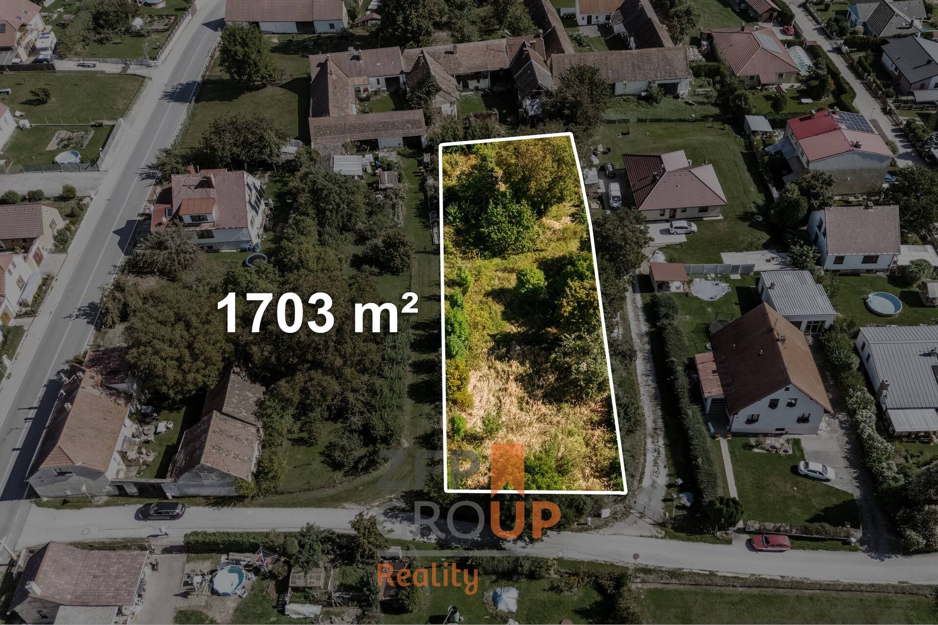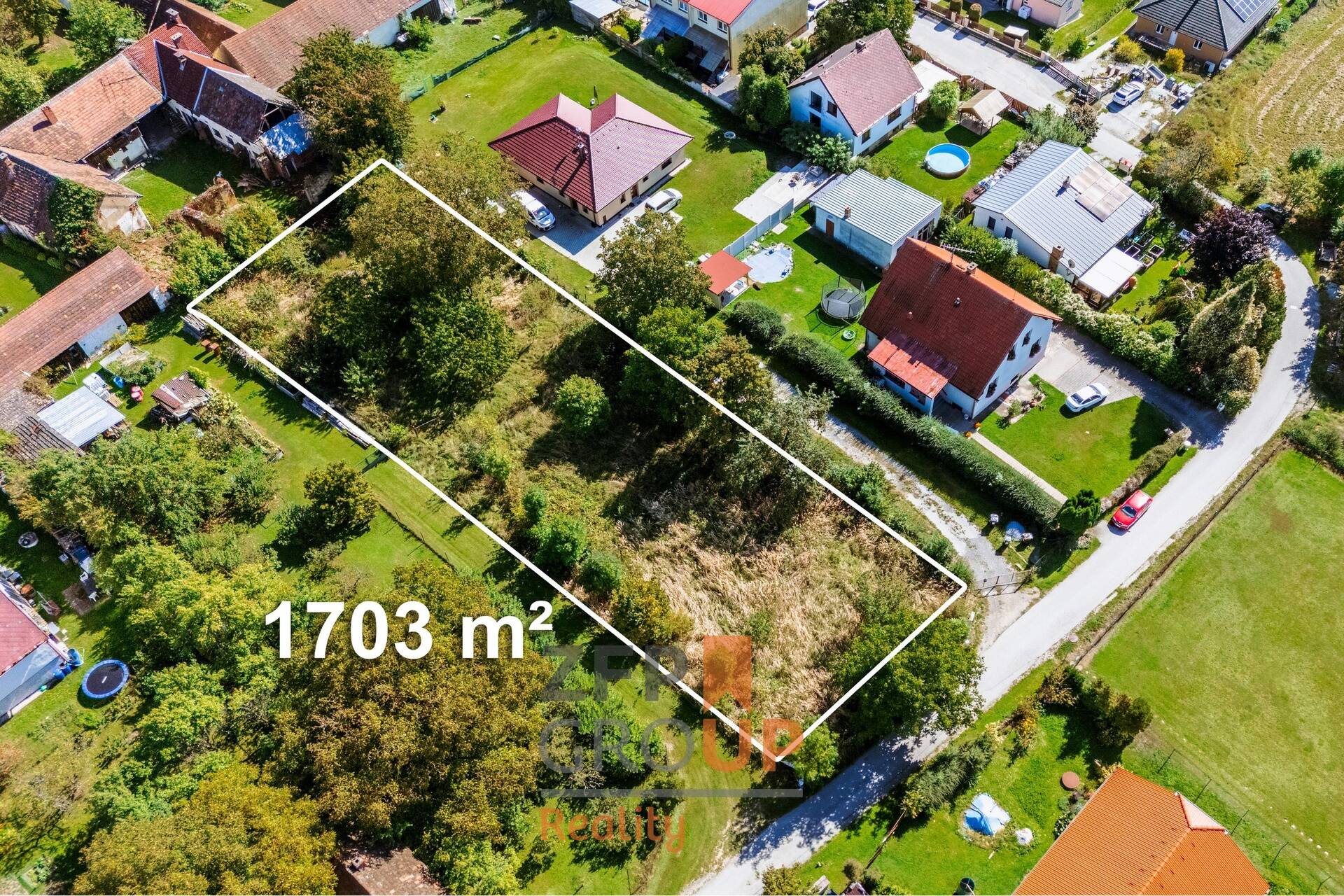 • Velkorysá plocha 1 703 m² – pohodlné osazení RD, zahrada, zázemí