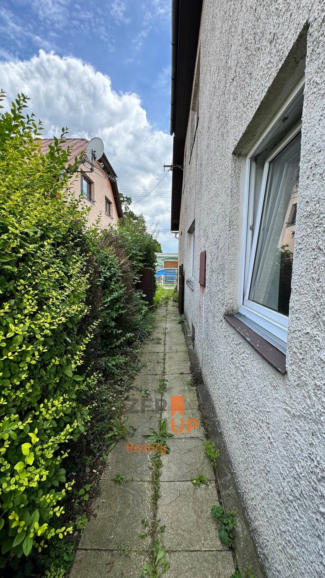 Na konci zahrady se nachází samostatná zděná garáž s připojením na elektřinu. Před domem se nachází praktická předzahrádka, kterou lze využít také k pohodlnému parkování až dvou vozidel. Zahrada zajišťuje dostatek soukromí a tvoří přirozený odstup od sousední poloviny dvojdomku.