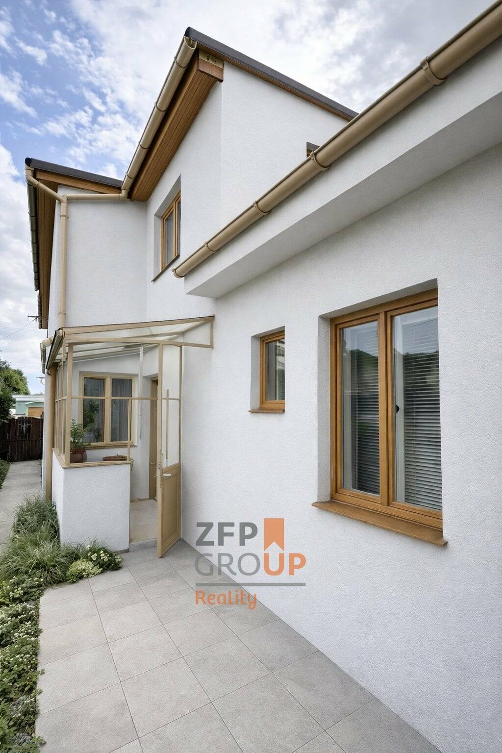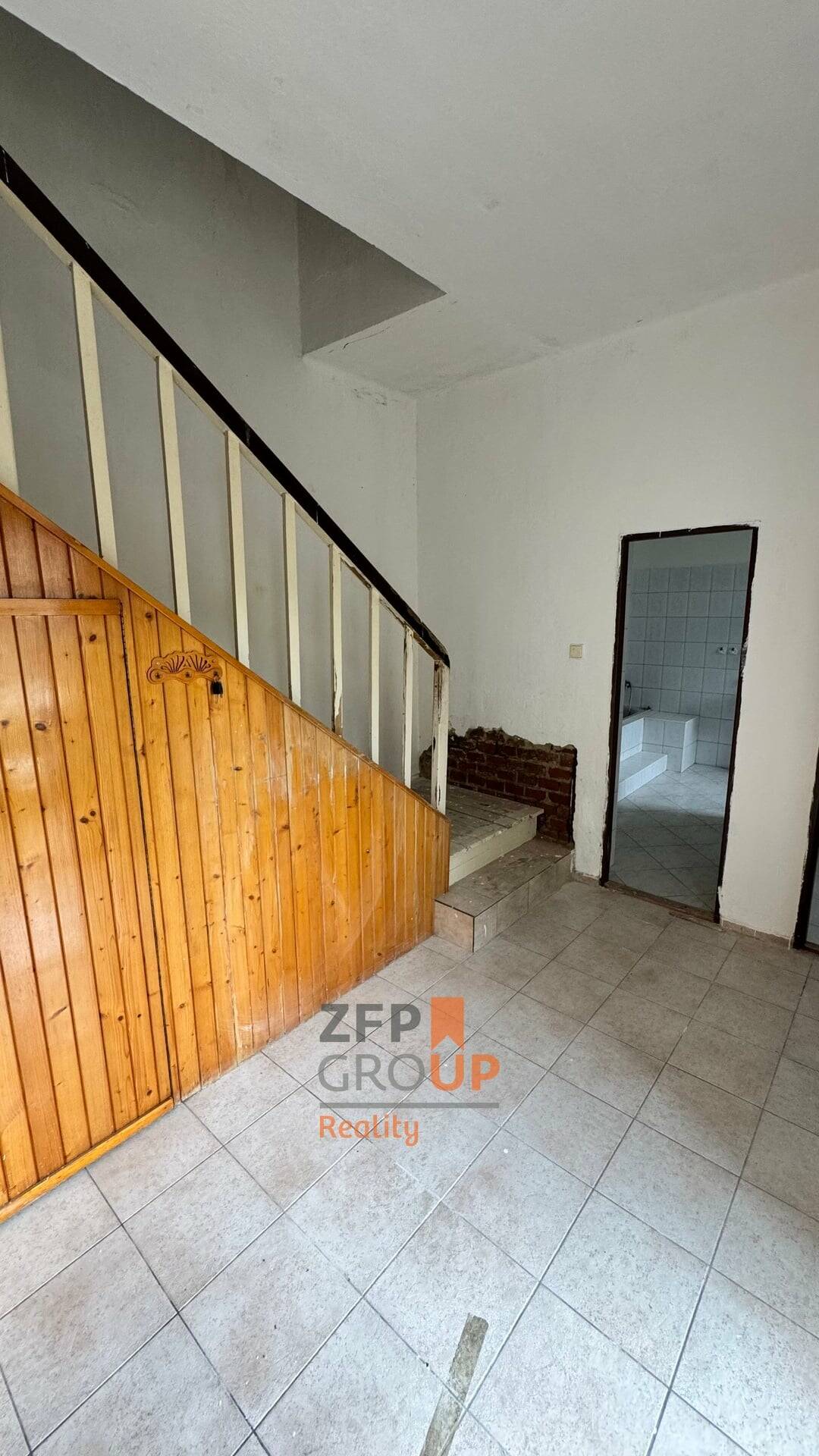 V přízemí domu se nachází vstupní chodba se schodištěm propojujícím jednotlivé části domu. Na levé straně je umístěn prostorný obývací pokoj s jídelnou, na který navazuje samostatný kuchyňský kout. Na pravé straně pak koupelna s vanou a samostatné WC. Všechny místnosti jsou světlé, s výhledem do zeleně. Ze zadní části domu je přímý vstup na zahradu a současně přístup do zděné přístavby (kůlny). Vedle ní se nachází samostatná technická místnost s kotlem a zázemím pro další technická zařízení. Dům je napojen na plynovou přípojku, která slouží jako hlavní zdroj vytápění a pro vaření.